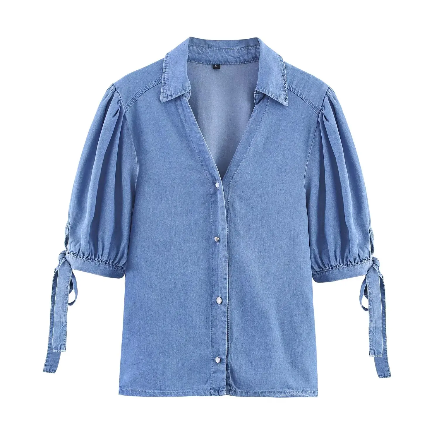 HH Women Solid Pant Sets Short Sleeves Bow Single-breasted Turn-Down Collar Shirts+Autumn Elastic Waist Pockets Wide Leg Pants