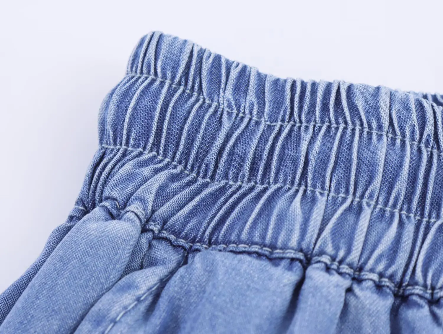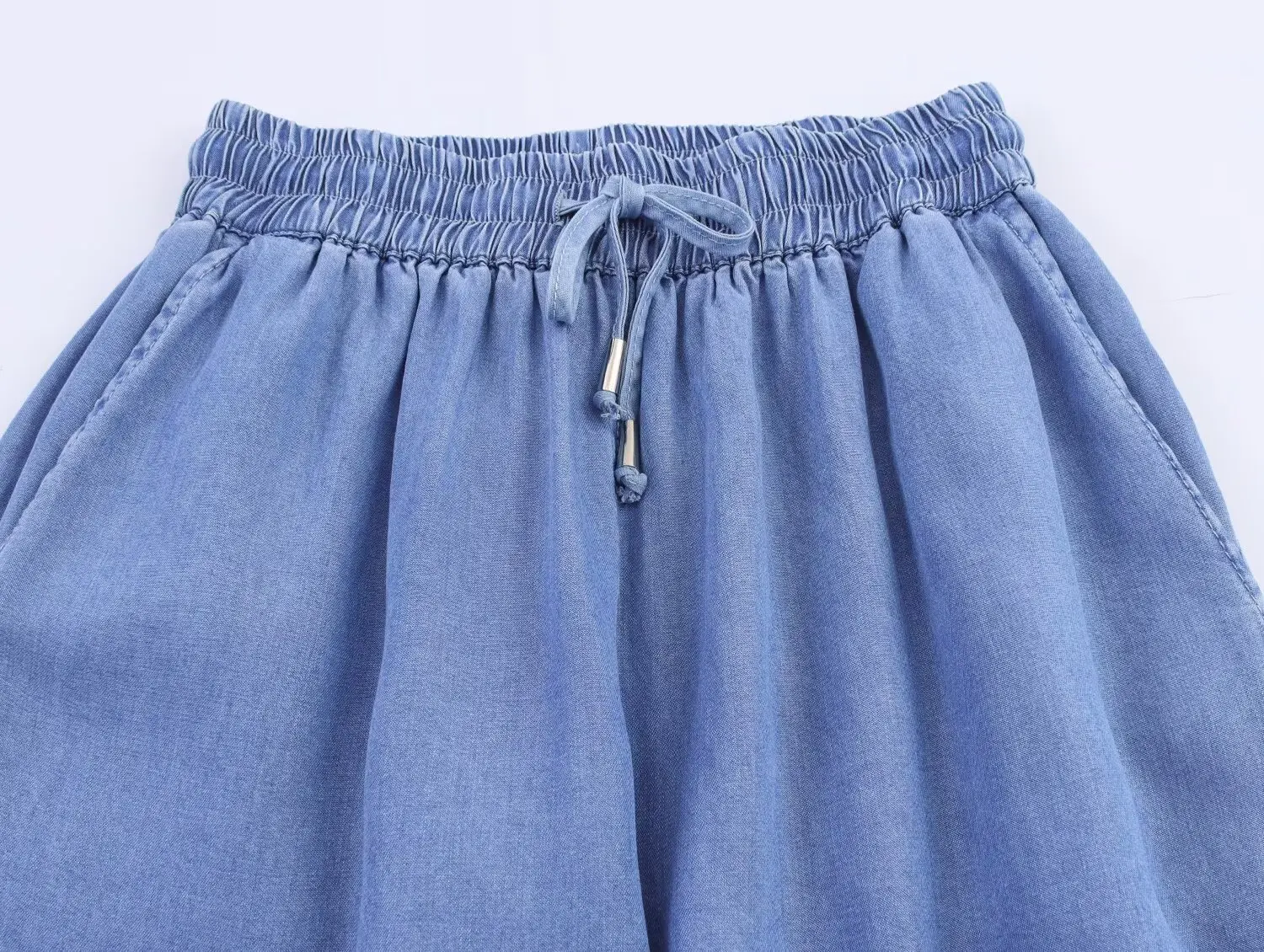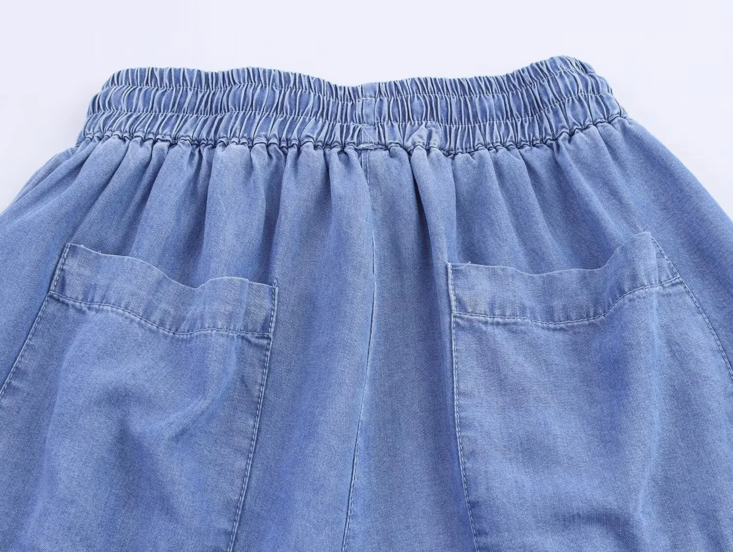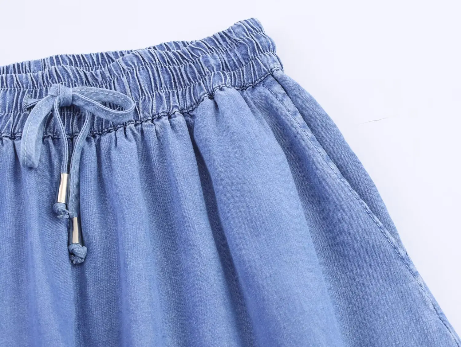 Women Jeans Denim Shorts Mid Waist Sexy Slim Fit Drawstring Pleated Summer 2024 Washing Pockets Slight Strech Solid Regular