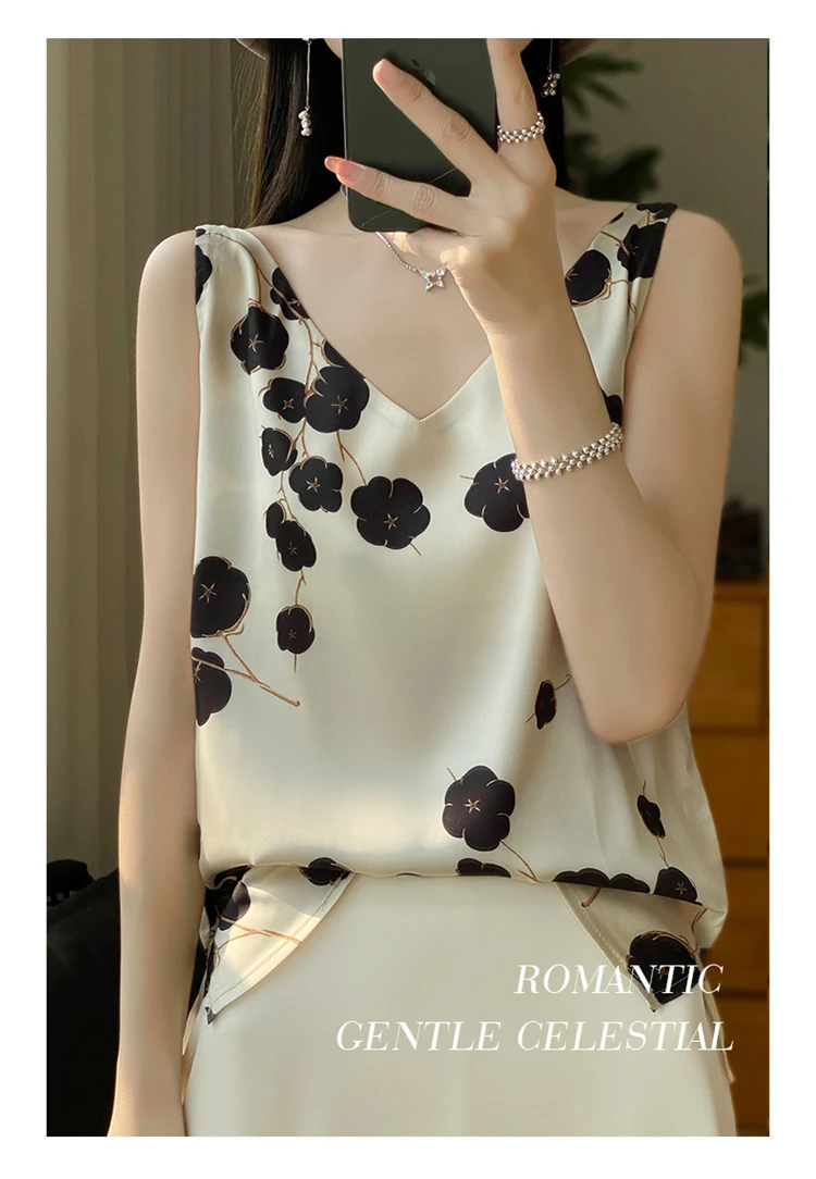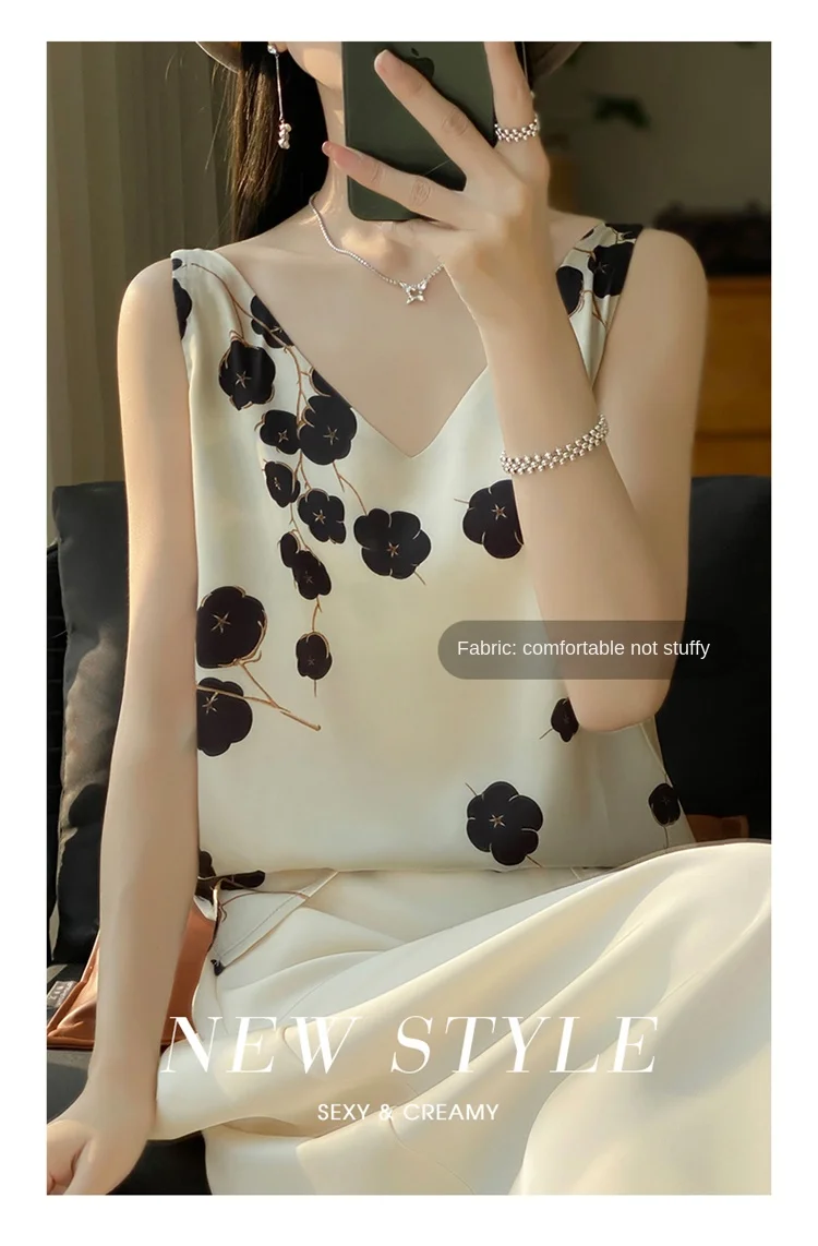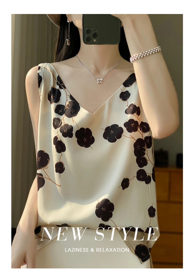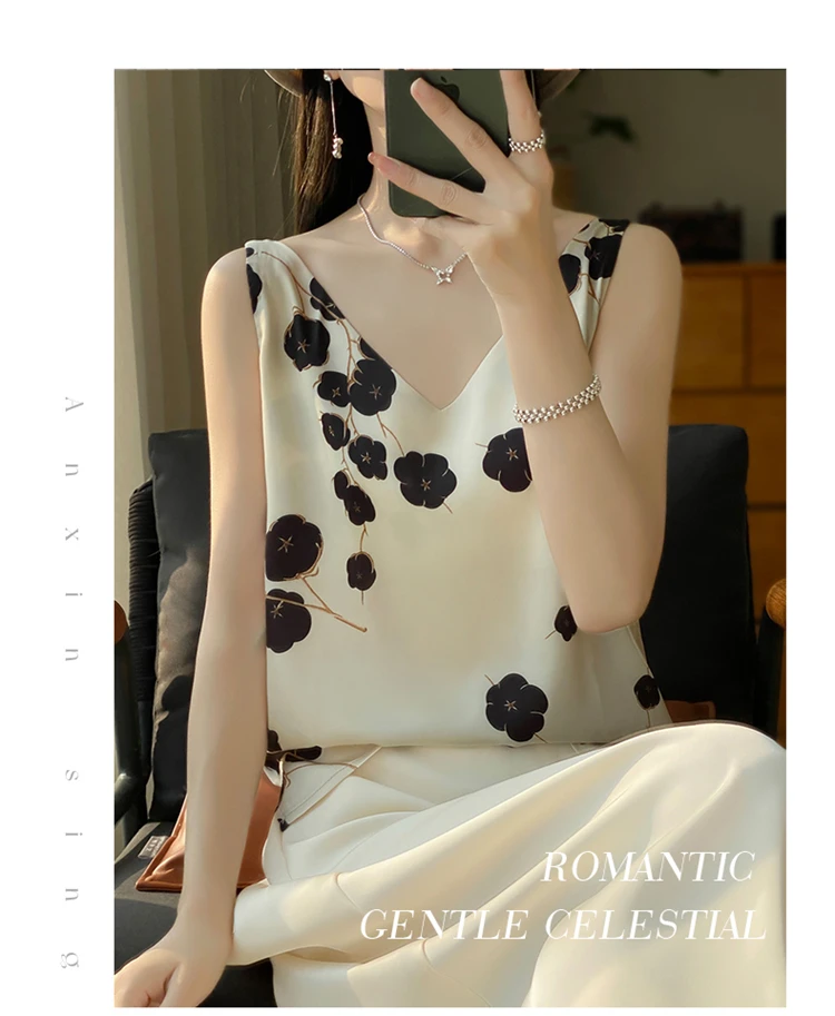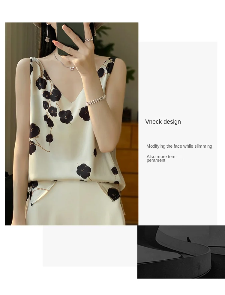 High-end Silk Camisole Vest For Women's Summer Outerwear With a Design Sense Of Suit And Mulberry Silk Top Rong Wan D24