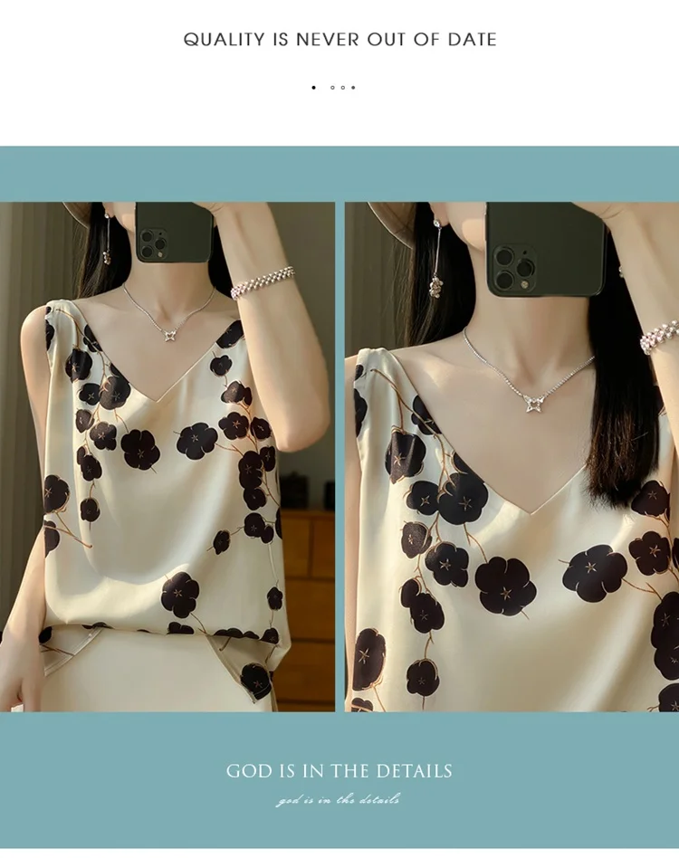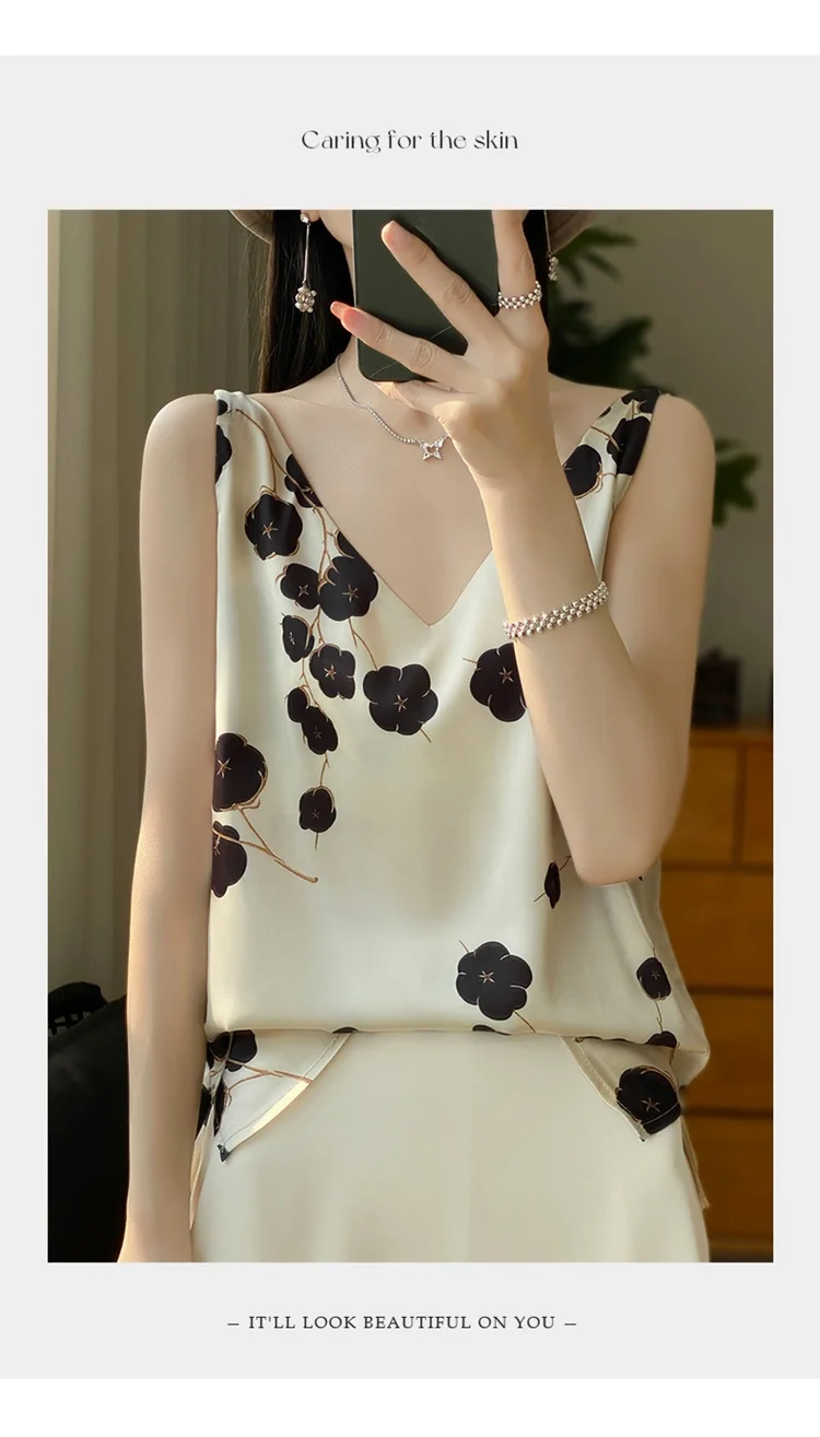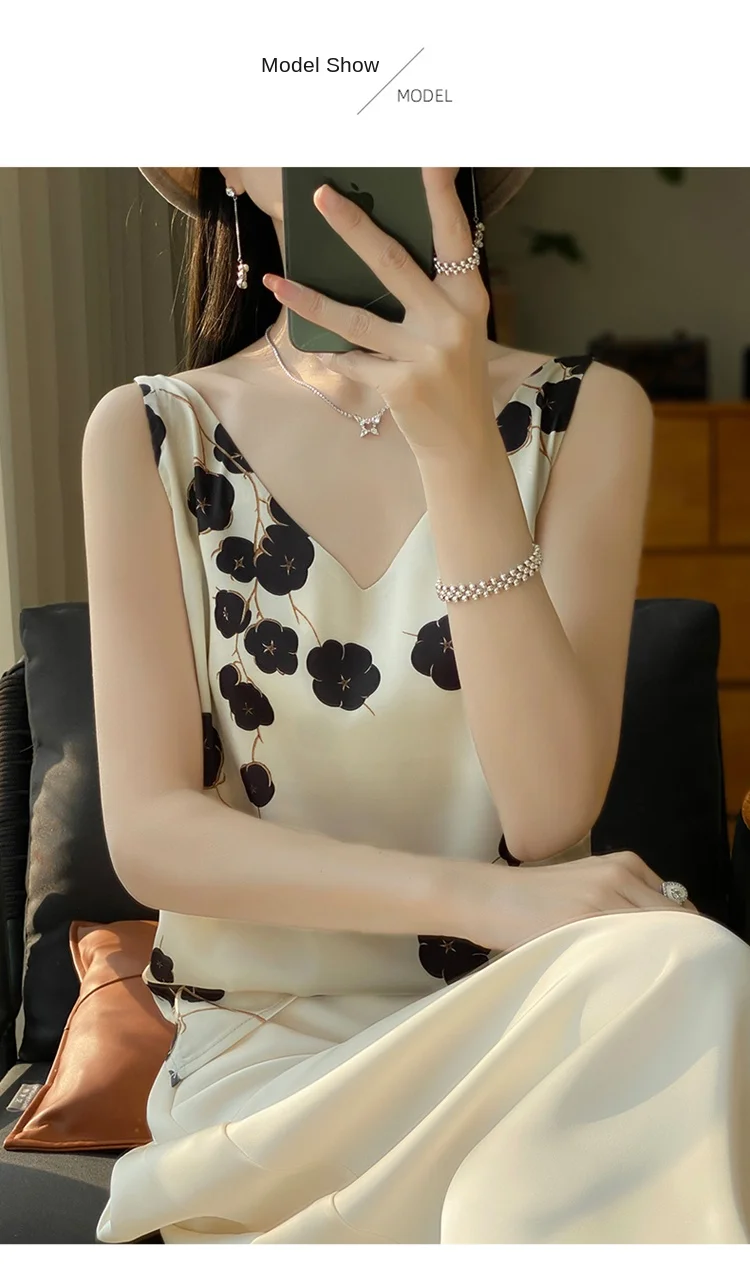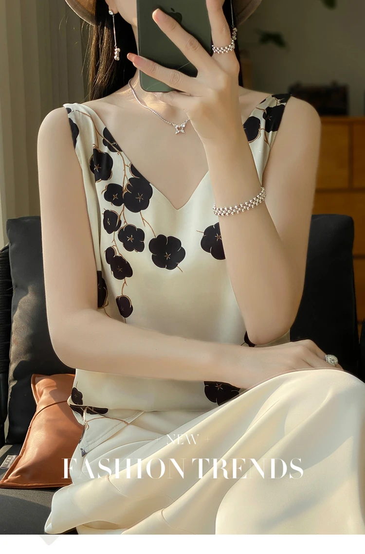High-end Silk Camisole Vest For Women's Summer Outerwear With a Design Sense Of Suit And Mulberry Silk Top Rong Wan D24