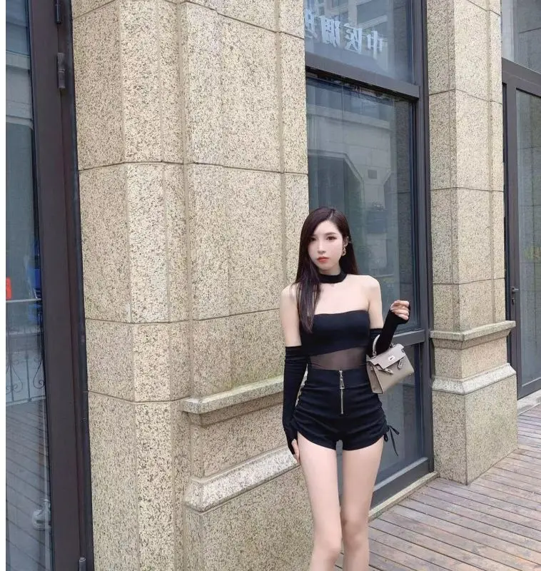 Women's jumpsuit 2025 summer new sleeveless new fashionable hollow camisole buckle comparison mesh tight jumpsuit