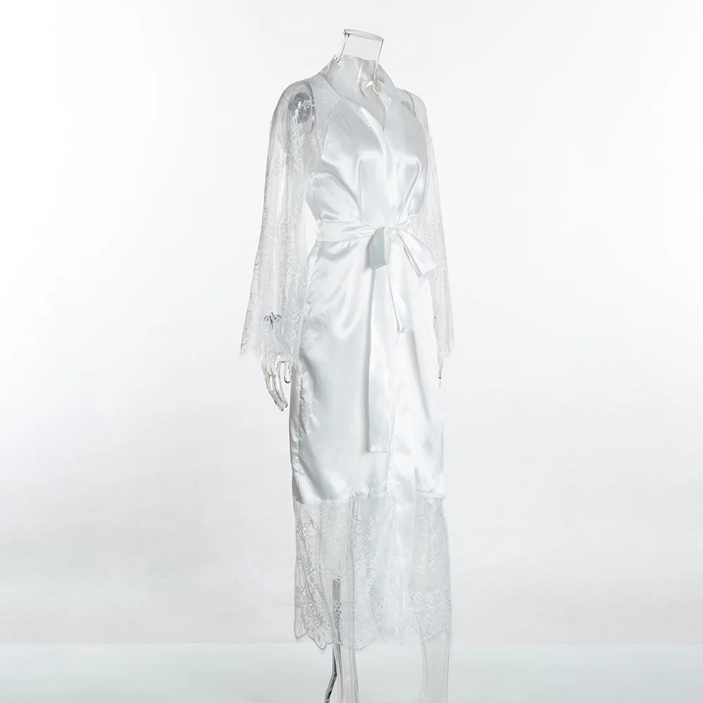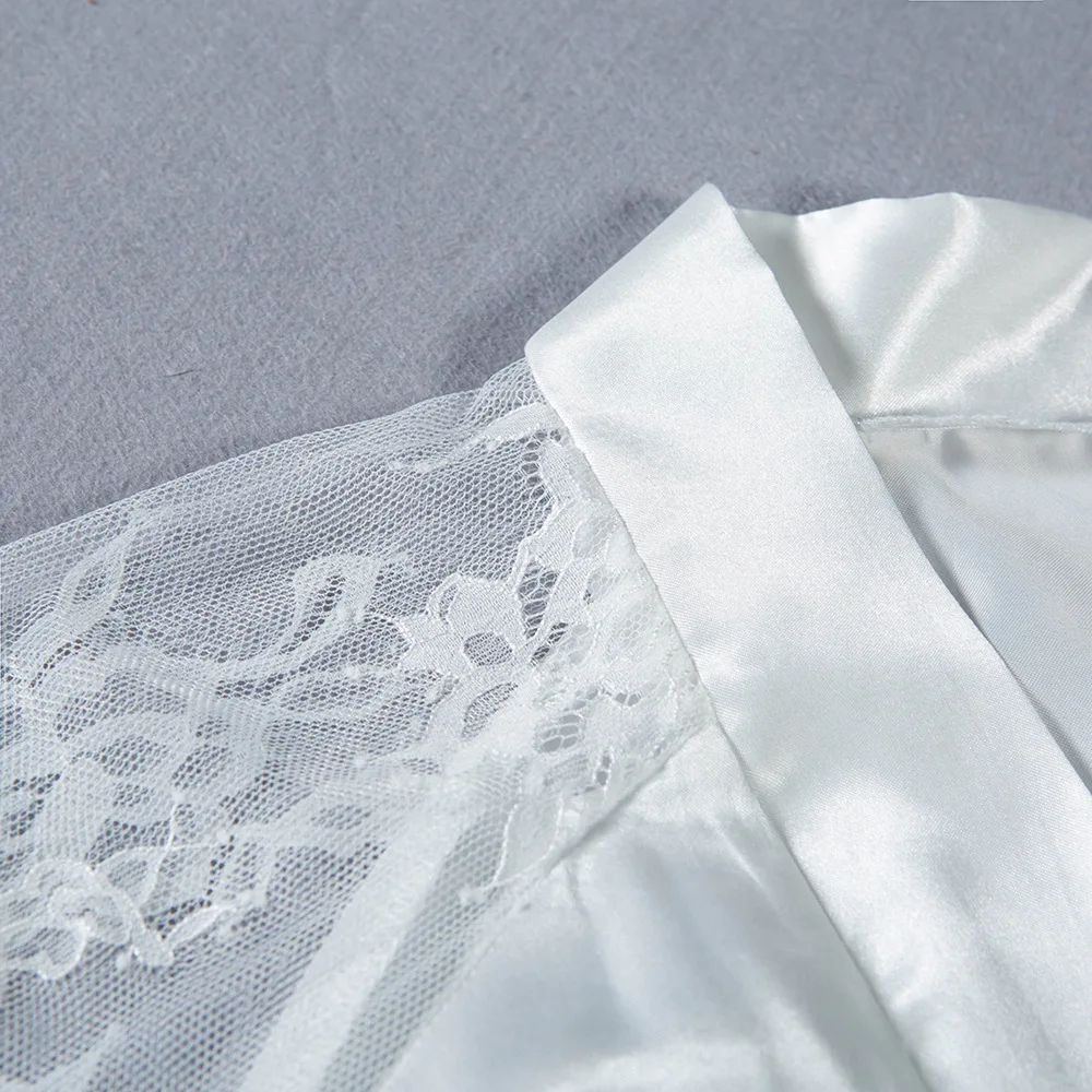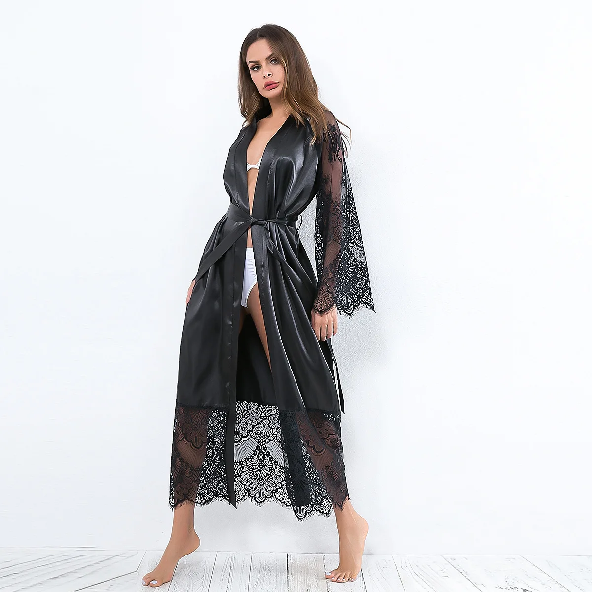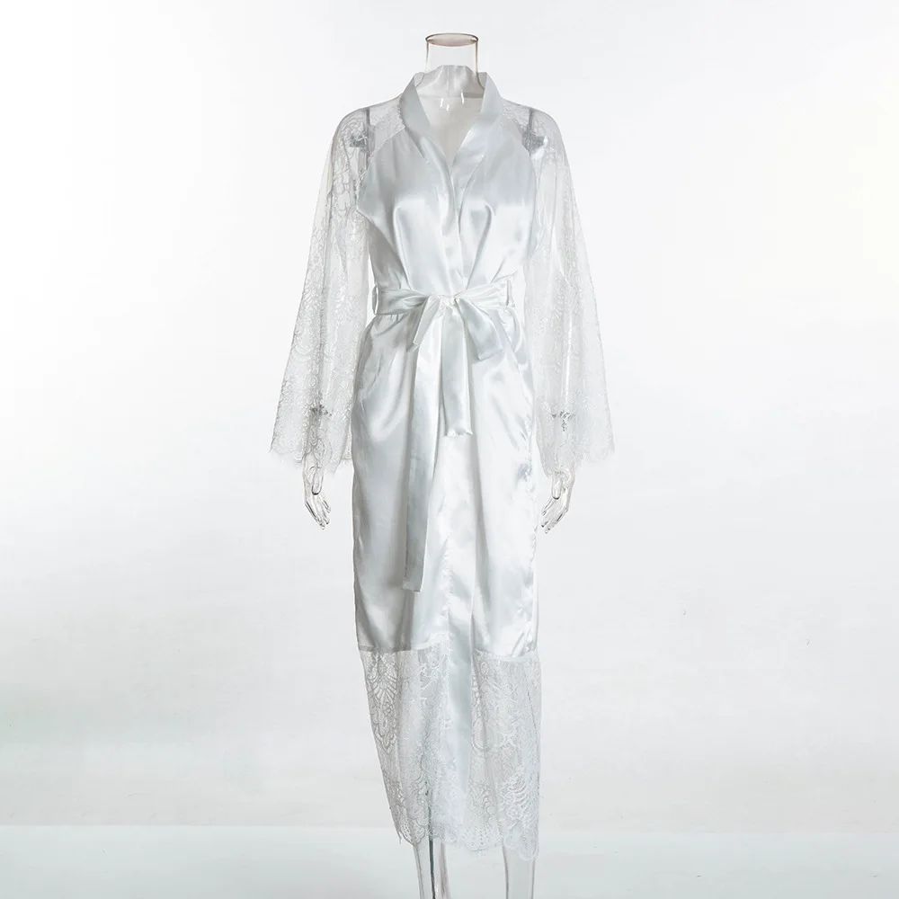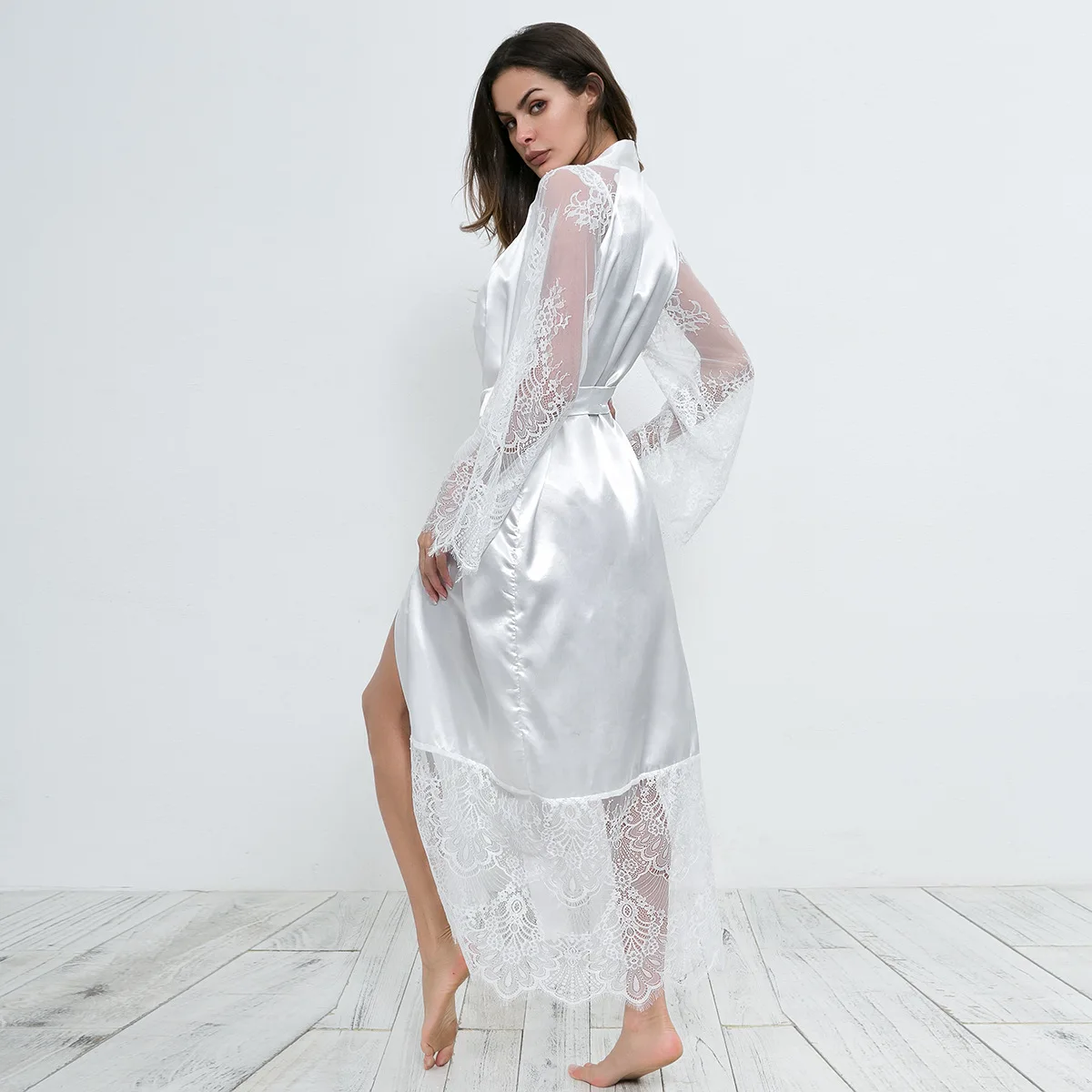 HNMCHIEF Women Pajamas Coat Robe Silky Women Floral Bathrobe Kimono Lace Sleep Robe Long Wedding Bridesmaid Silk Bride Summer