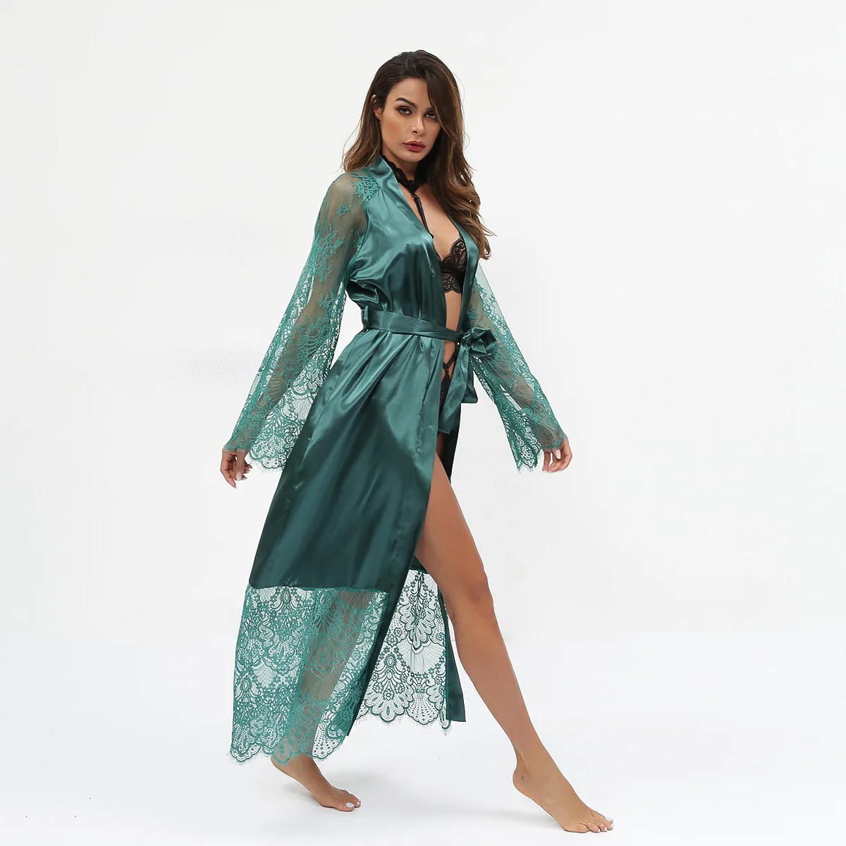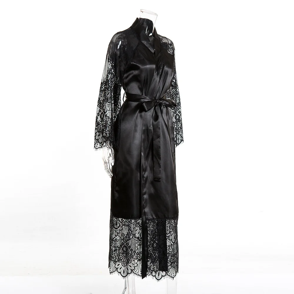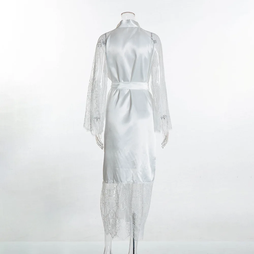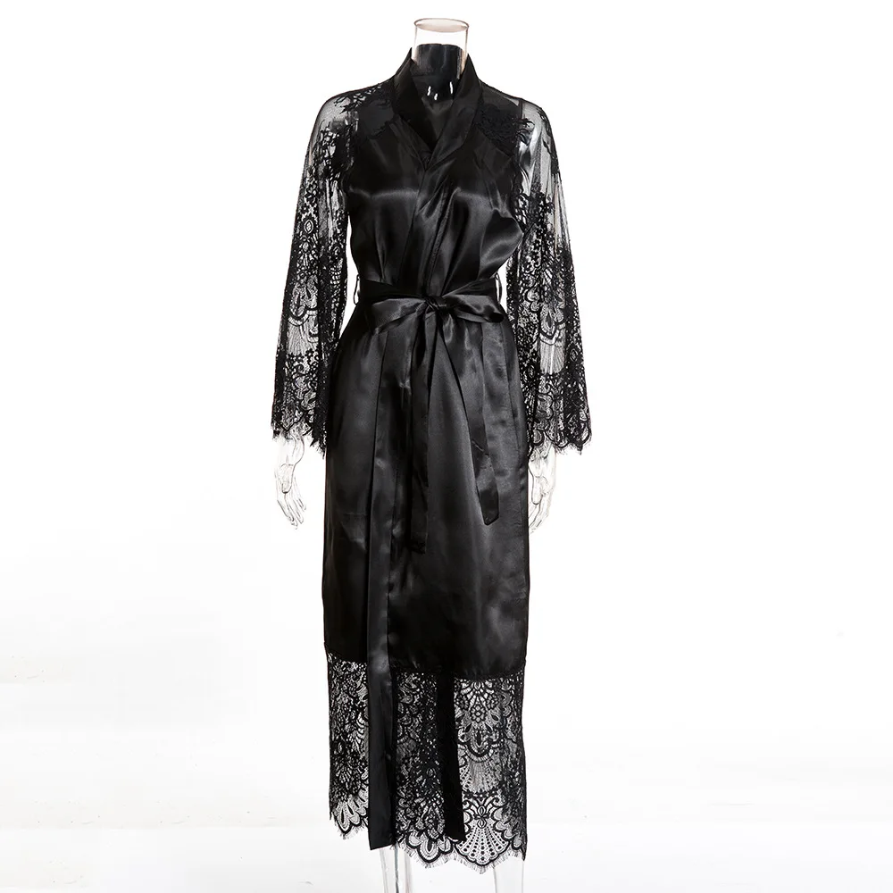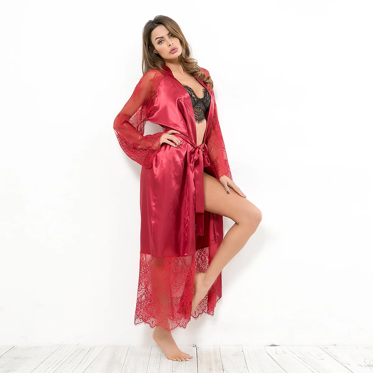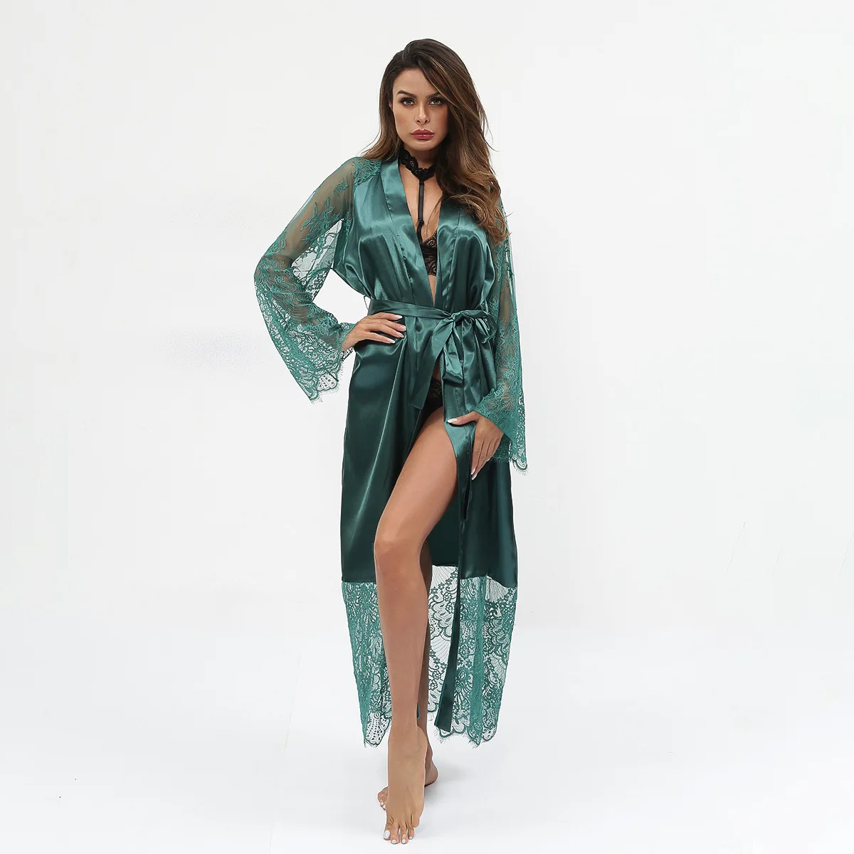 HNMCHIEF Women Pajamas Coat Robe Silky Women Floral Bathrobe Kimono Lace Sleep Robe Long Wedding Bridesmaid Silk Bride Summer