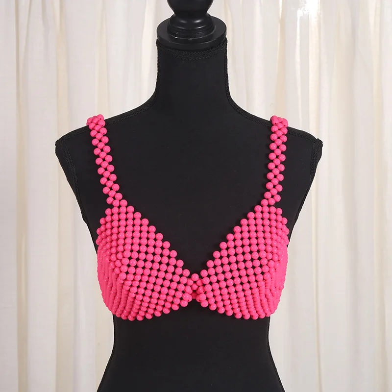 Hollow Out Pearl Sling Crop Tops For Women Sexy Pearl Beaded Bra Top for Women Pearl Straps Elegant Crop Top for Parties