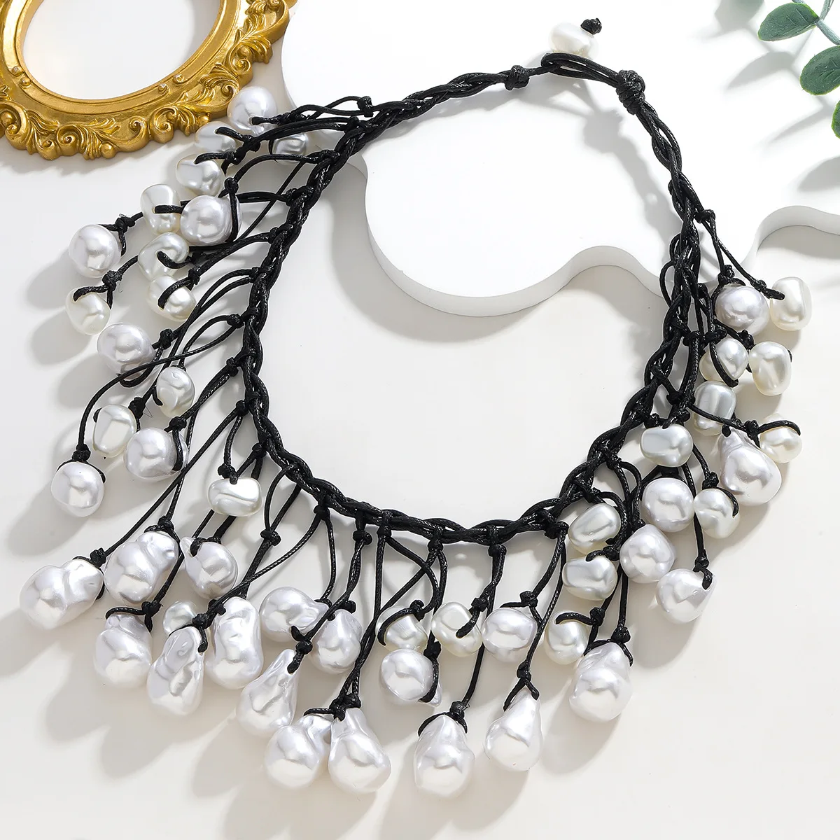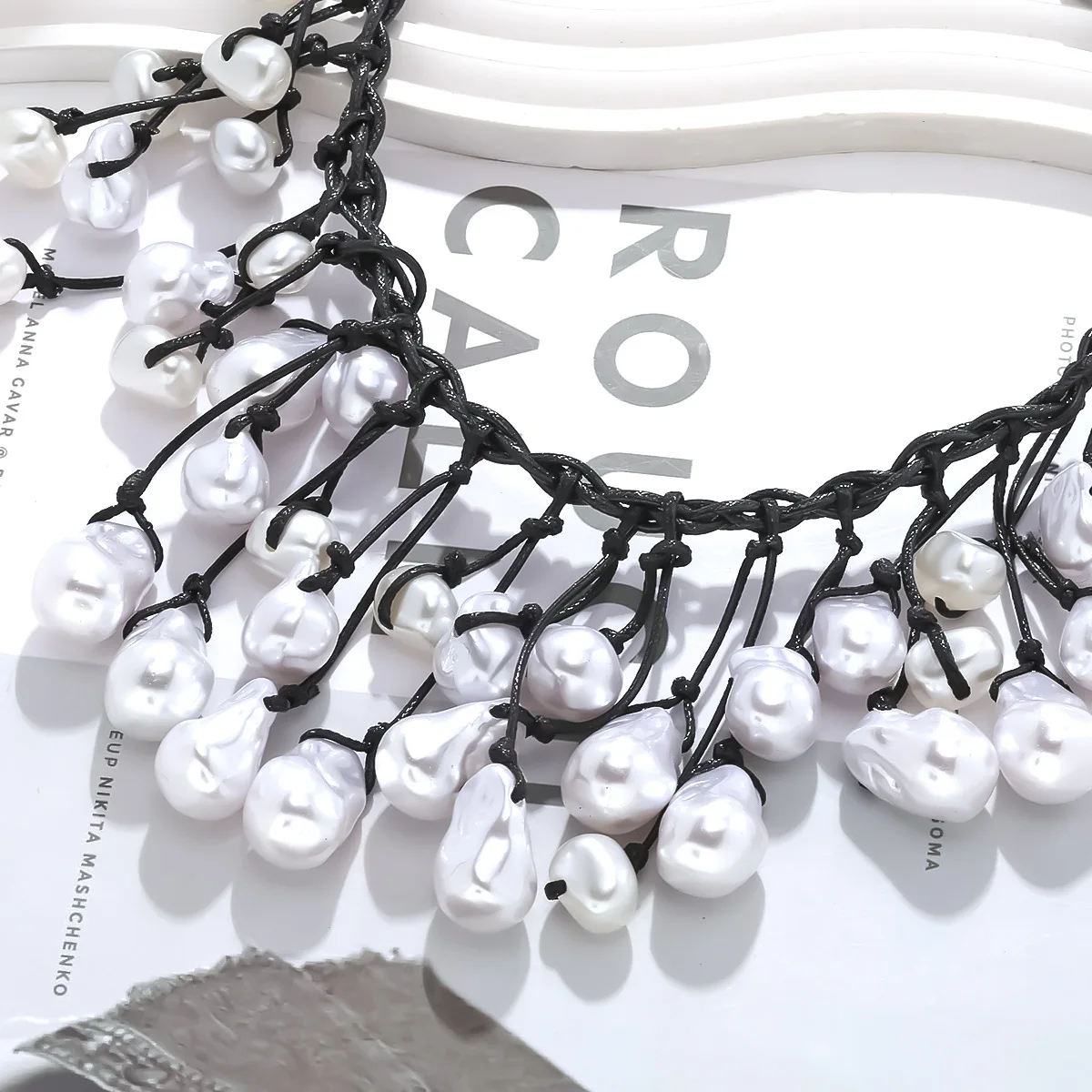 HUANQI Exaggerated Elegant Punk Sweet Cool Hot Girl Style Imitation Pearl Necklace for Women's Daily Date Jewelry
