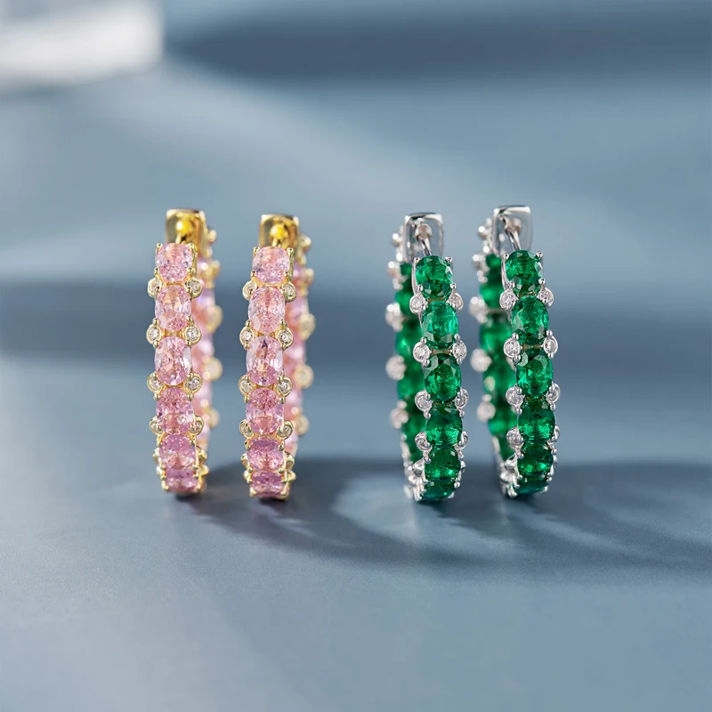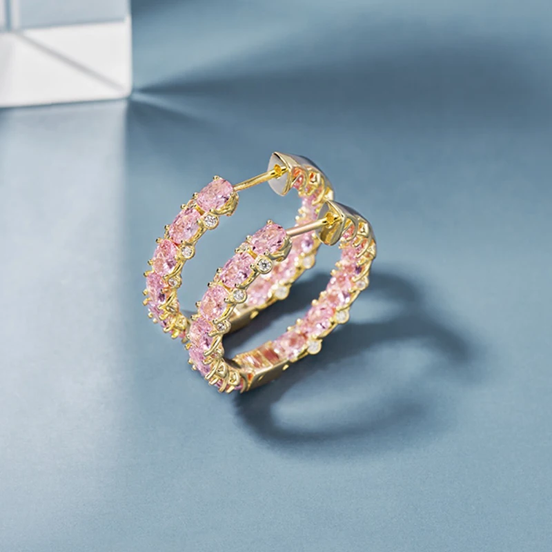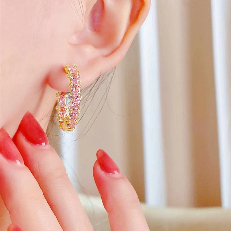 Huitan Luxury Trendy Pink/Green/Blue/Yellow CZ Hoop Earrings for Women Silver Color/Gold Color Hot Trendy Girls Jewelry Dropship