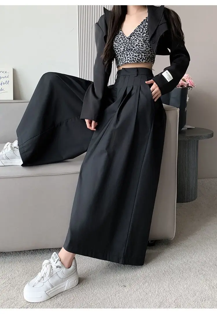 Irregular suit, pants, skirt, female 2024, short, loose, wide leg, big swing pants, high waist, slimming, pleated casual pants