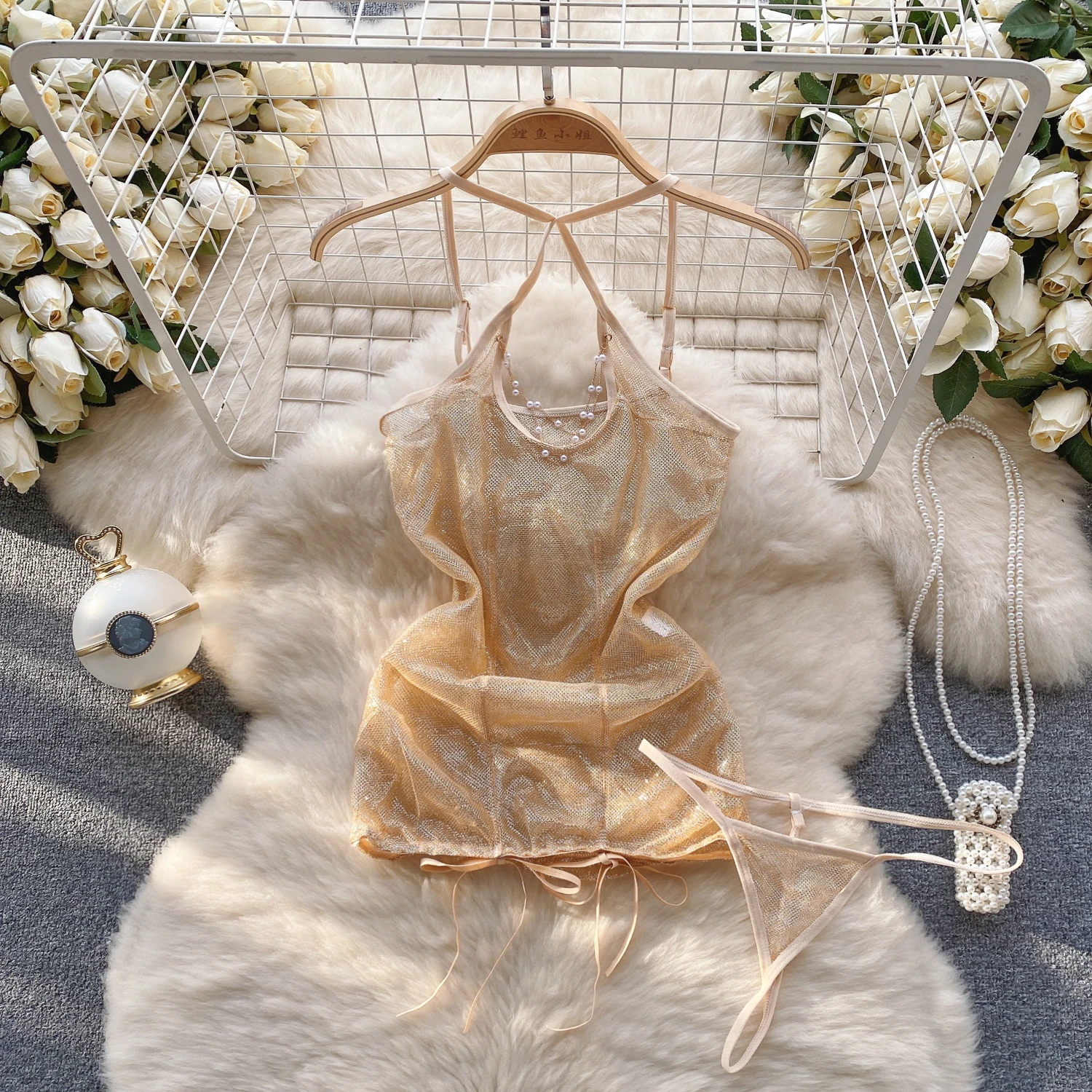 Women's jumpsuit 2025 summer new sleeveless new fashionable hollow camisole buckle comparison mesh tight jumpsuit