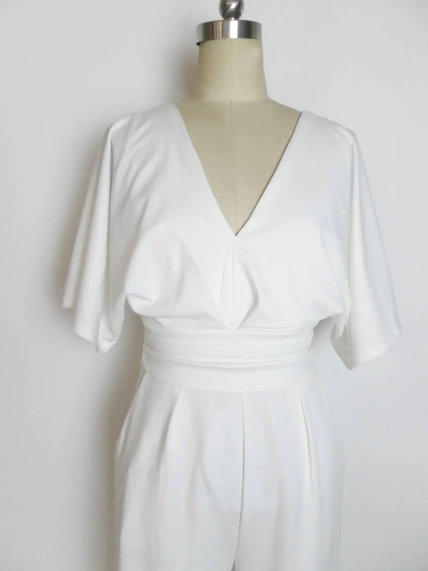 Jump Suits for Women V-neck Five-point Sleeve Wide-leg Pants Solid Color White Jumpsuits for Women Elegance Pants One Pieces
