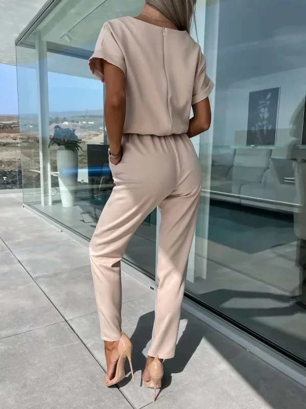 Sexy Elegant New Fashion 2024 Summer Casual Female Clothing Outfits Solid Color Short Sleeved High Waisted Workwear Jumpsuit