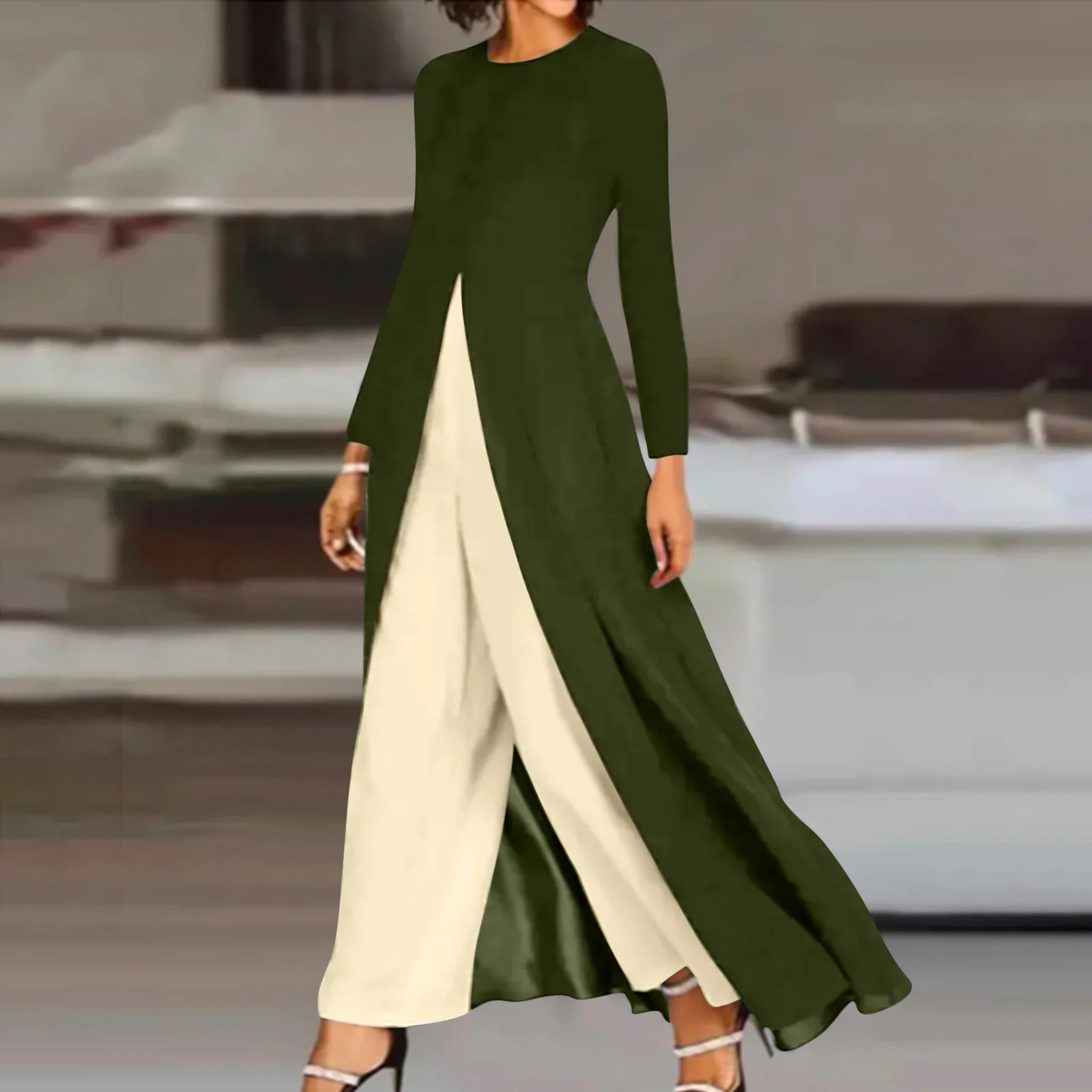 Jumpsuit Women 2024 Summer Fashion Colorblock Patchwork Rhinestone Square Collar Long Sleeve Asymmetrical Daily Long Jumpsuit