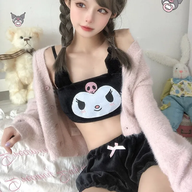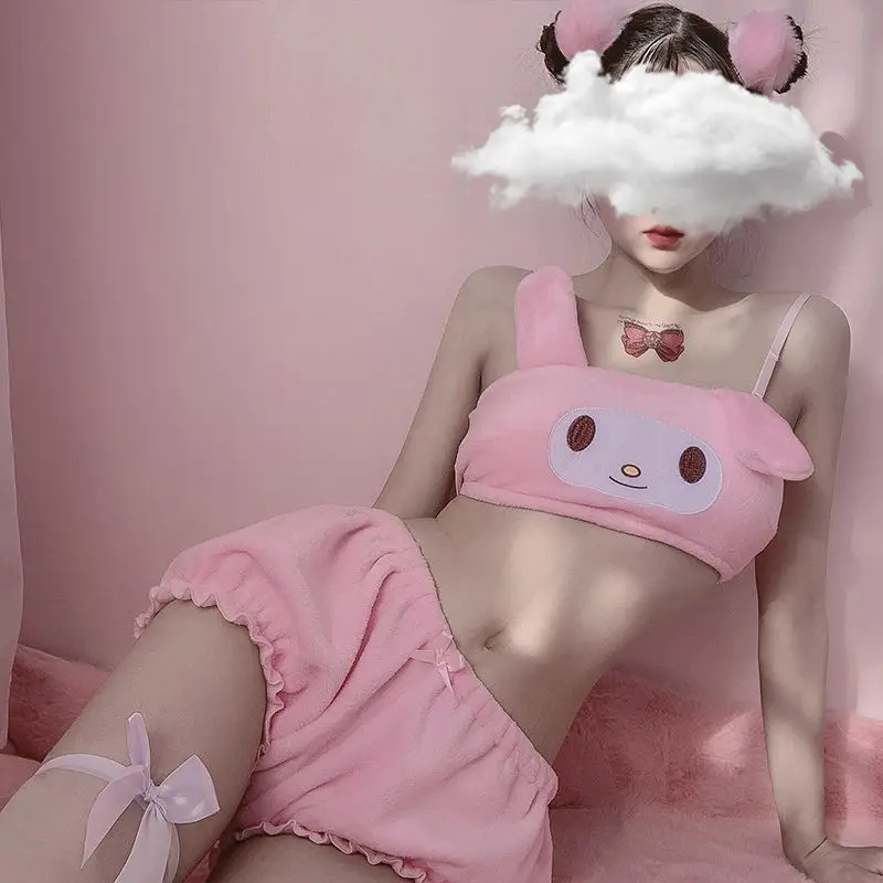 Kawaii Pajamas Camis Comfortable Plush Shorts Homewear Cute Cartoon Sleepwear Milk Silk Women's Underwear Set
