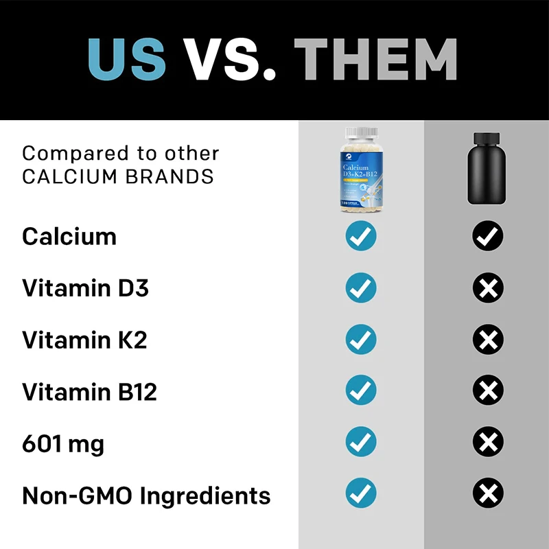 Kexinsh Vitamin D3K2 Capsules Vb12 Calcium Support Calcium Absorption Bone Teeth Heart Brain Health Joints Immune Function