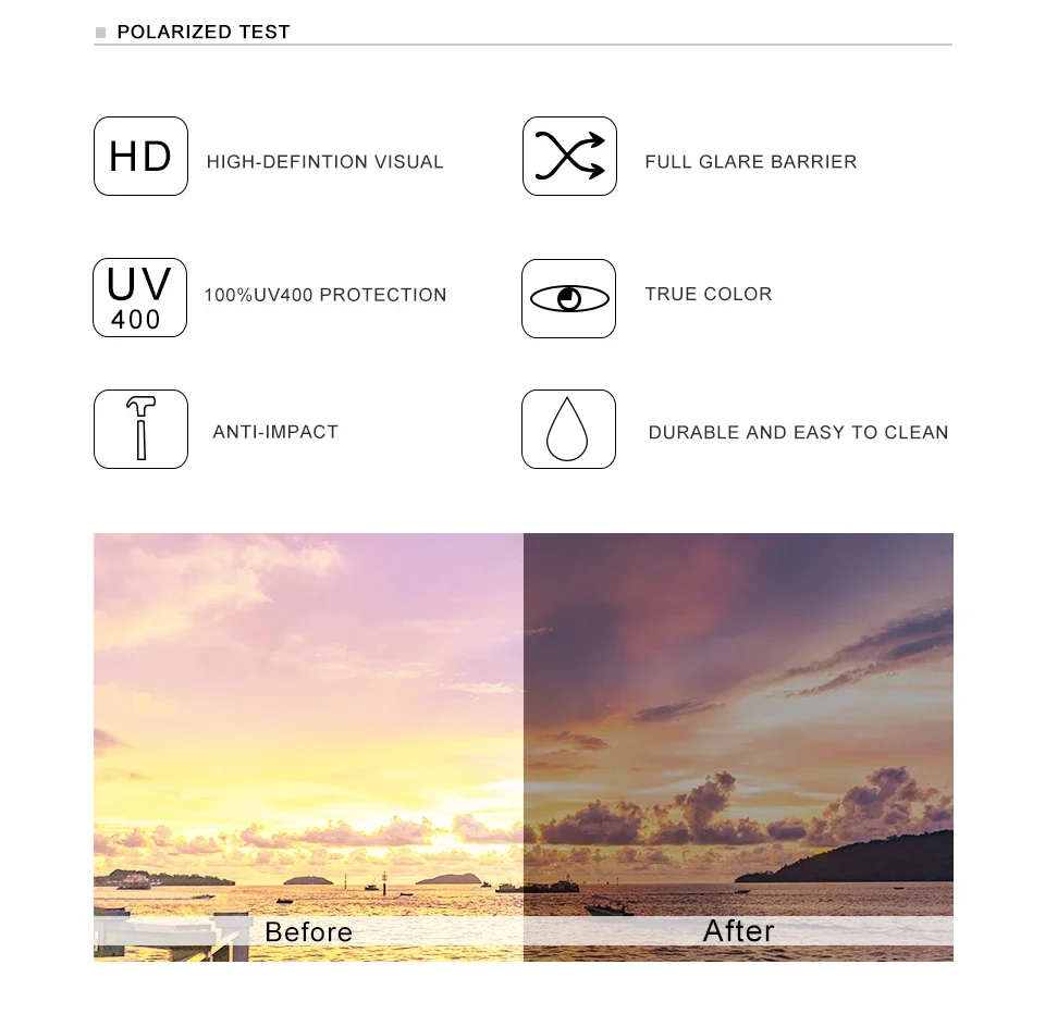 Comfortable eye protection:100% polarized light, eliminates glare, thereby enhancing visual comfort while making it easier to see below the surface of the water. Both men's and women's sunglasses offer UVA and UVB protection.