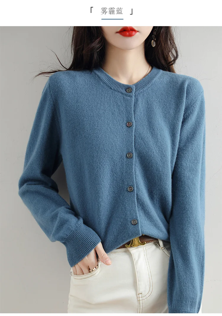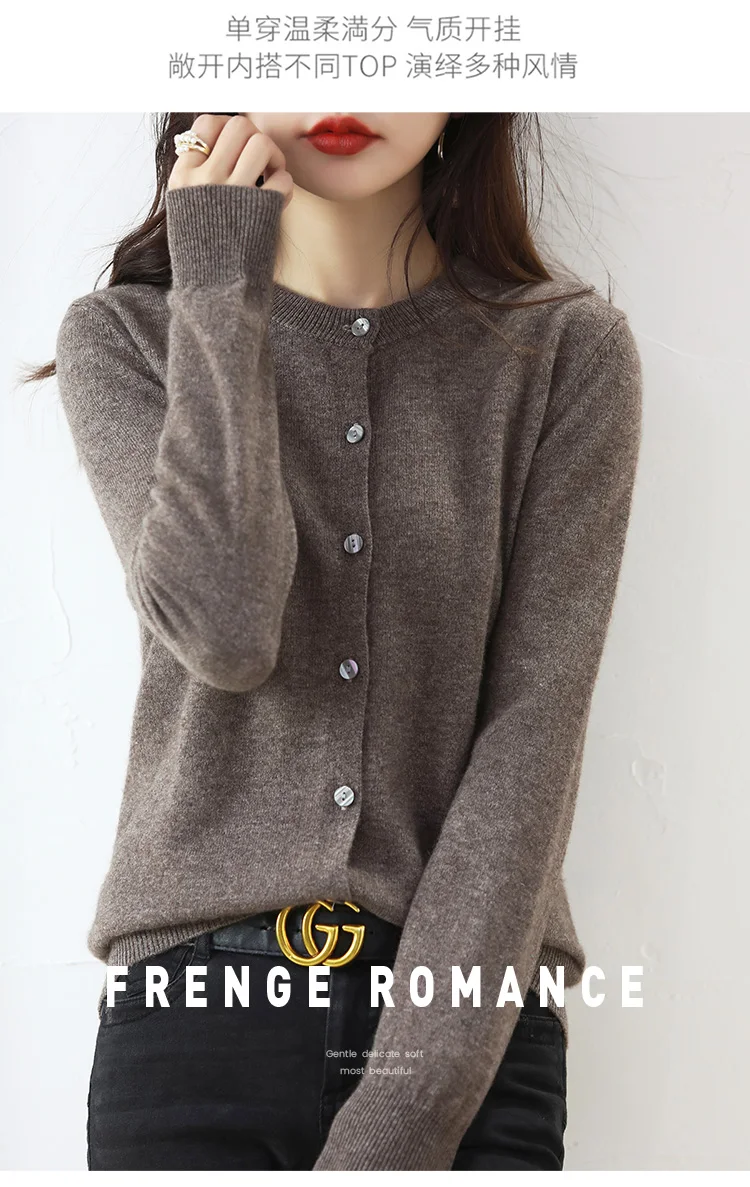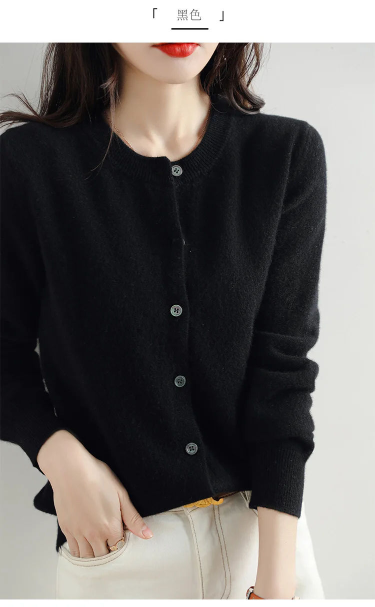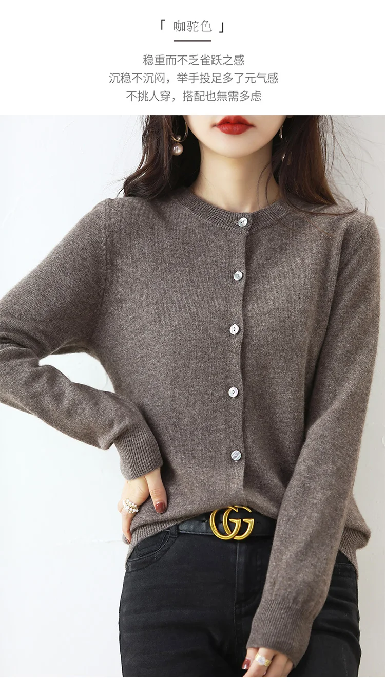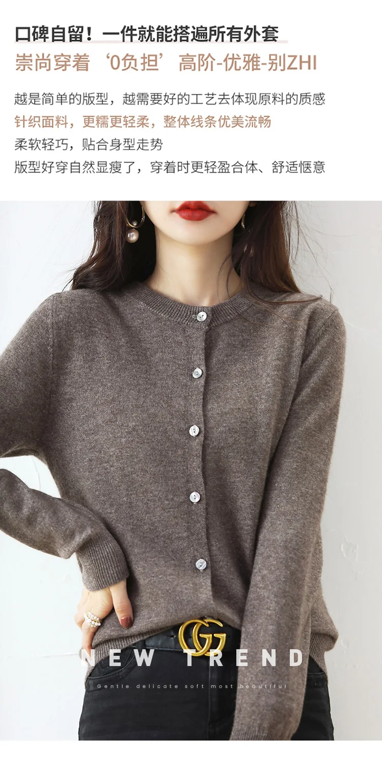 Knitted Cardigan Women's Sweater Autumn And Winter 2022 New Solid Color Coat Round Neck Short Long Sleeve Loose Korean Fashion