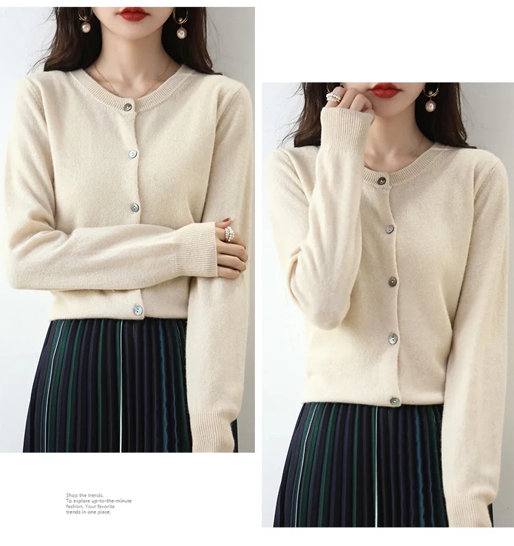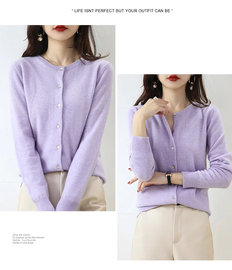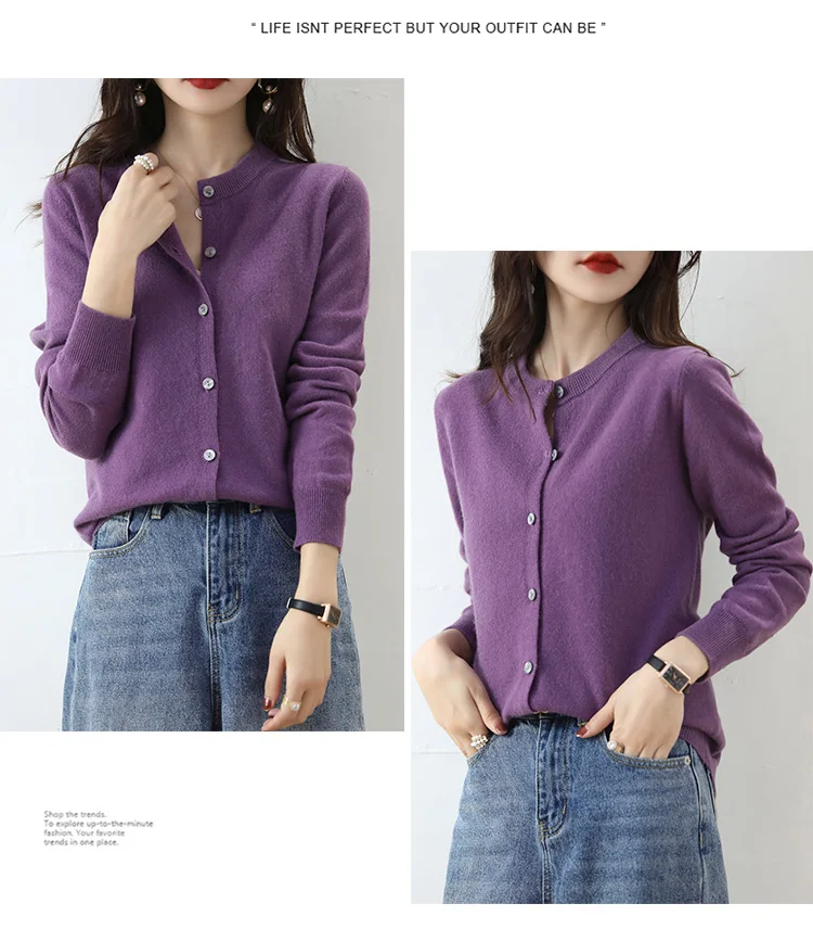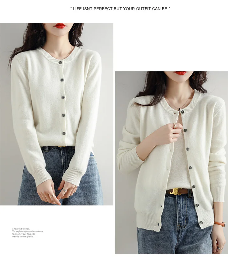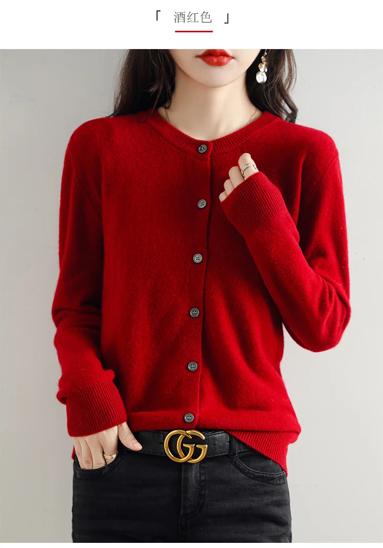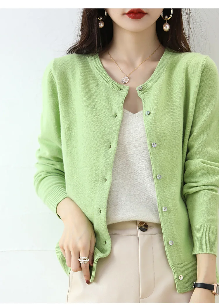 Knitted Cardigan Women's Sweater Autumn And Winter 2022 New Solid Color Coat Round Neck Short Long Sleeve Loose Korean Fashion