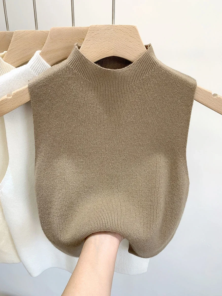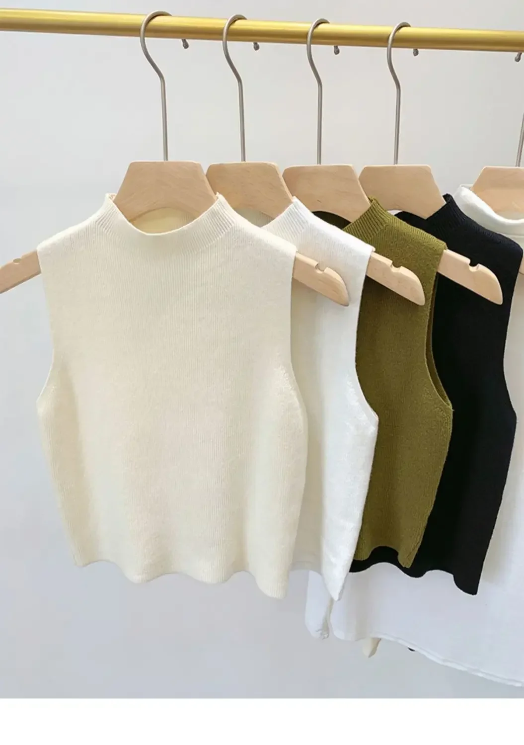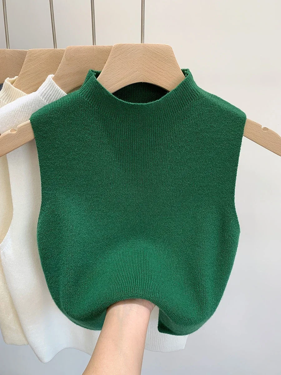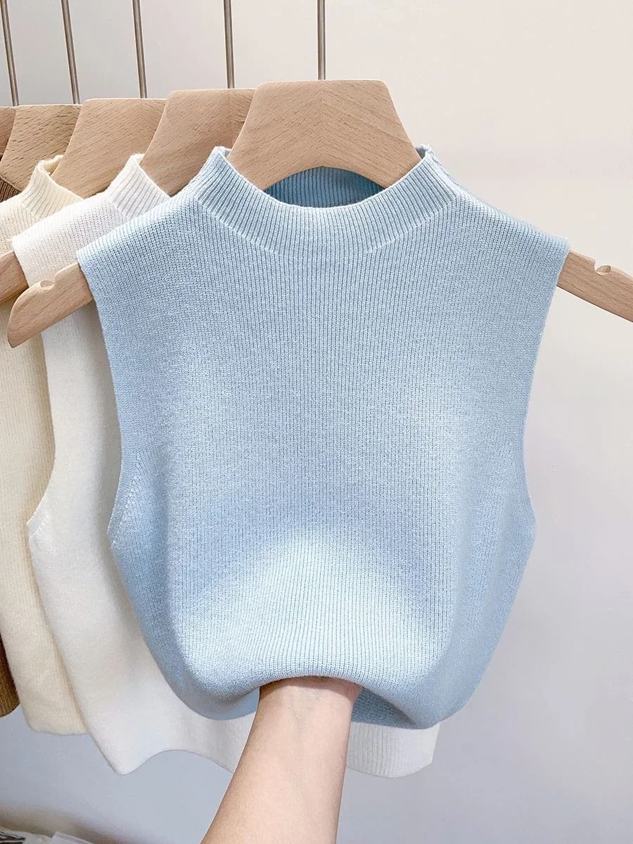 Knitted Top Women Y2K Tank Top Half Neck Vest Female Sleeveless Sweater Chic Streetwear Solid Skinny Tube Top Summer 2025