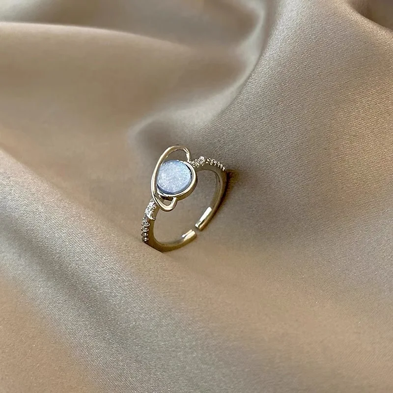 Korean Blue Crystal Planet Rings Y2K Creative Zircon Asteroid Open Ring Shiny Zircon Rings for Women Teens Party Jewelry
