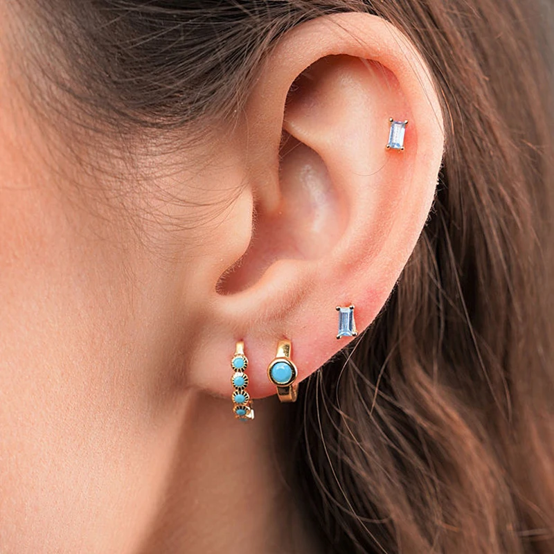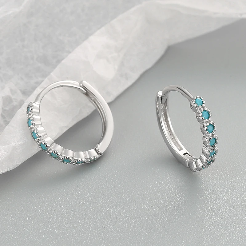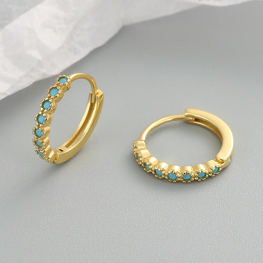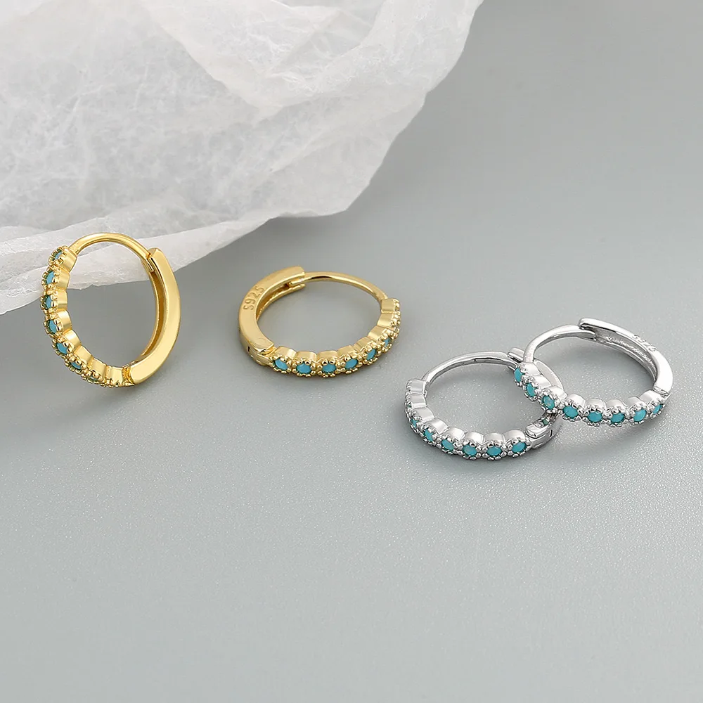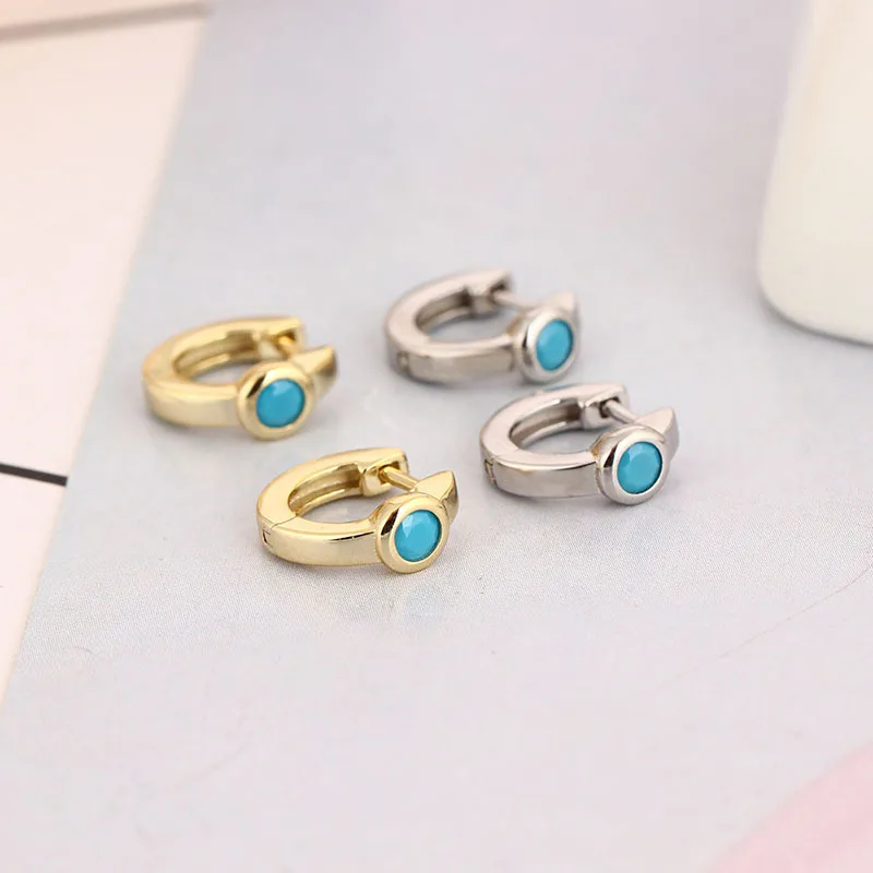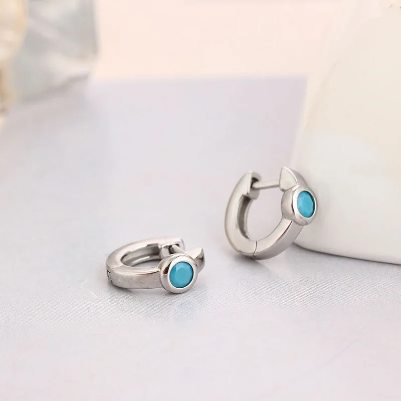 Korean Stainless Steel Turquoise Small Hoop Earrings For Women Round Circle Huggie Punk Unisex Rock Earring Piercing Jewelry