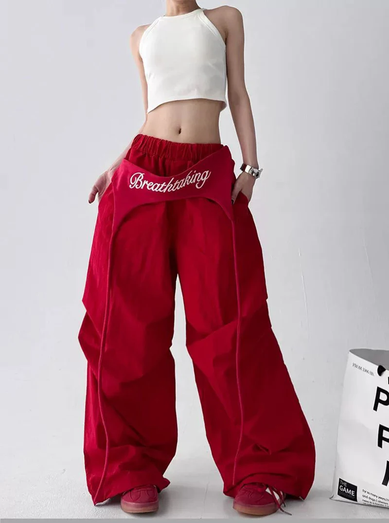Korean Y2K Cargo Pants Women Streetwear Letter Print Baggy Sweatpants Gyaru Harajuku Wide Leg Joggers Summer Casual Trousers