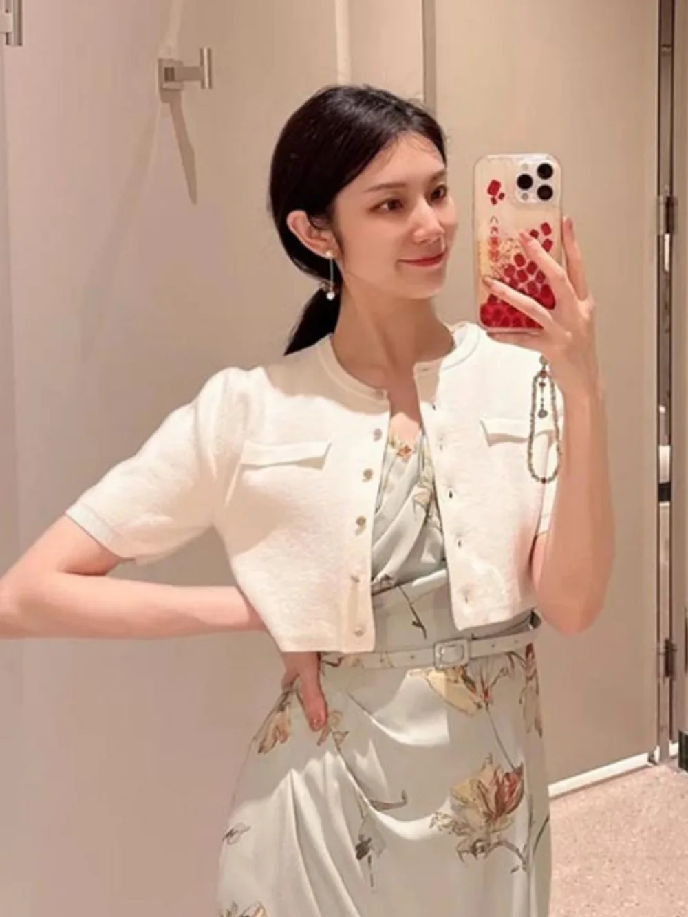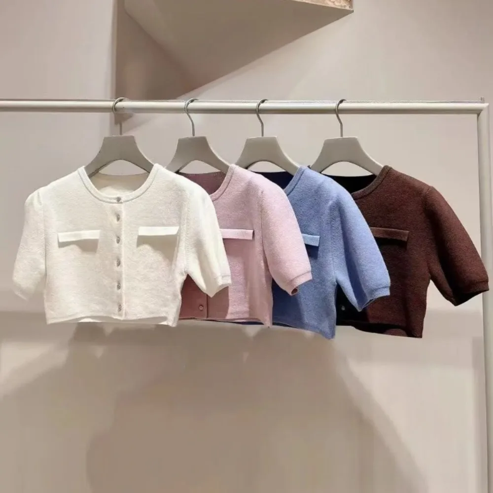 Kuzuwata Gentle Elegant O Neck Half Sleeve Jumper Knit All-match Short Preppy Literary Cardigan Japan Spring New Fresh Sweaters