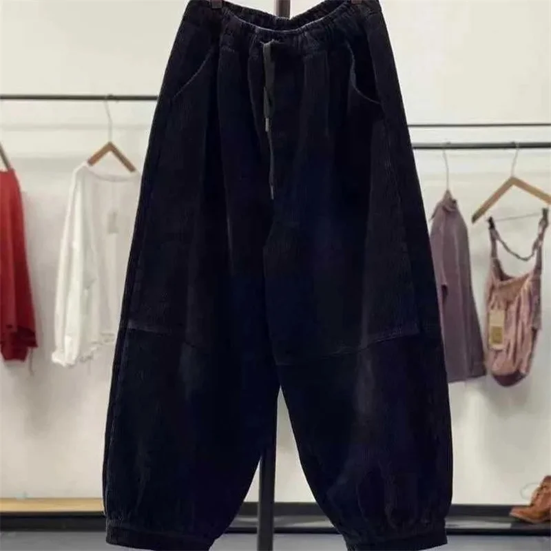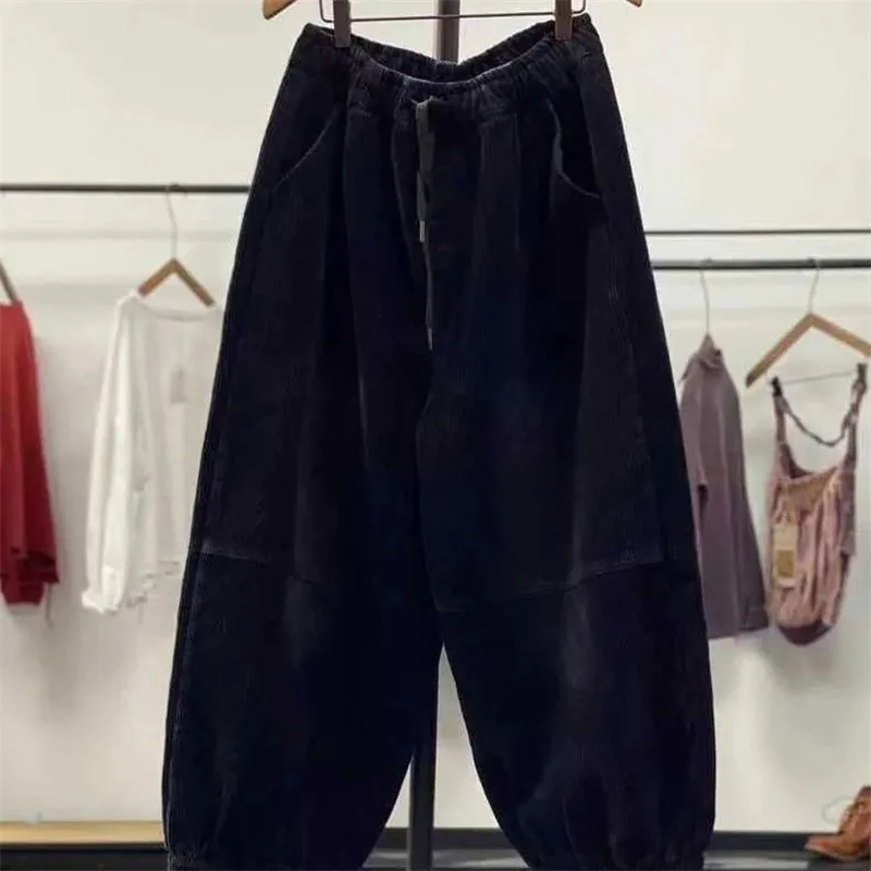 Ladies Large Size 4XL Corduroy Pantalons 2024 Female High Waist Add Velvet Casual Trousers Winter Women Loose Fit Lantern Pants