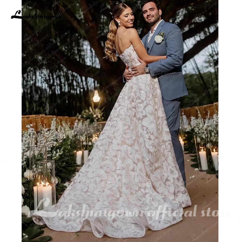 Lakshmigown Full Lace Strapless Wedding Dress Featuring Stunning Lace Appliques and Floral A-Line Bridal Dress Customized
