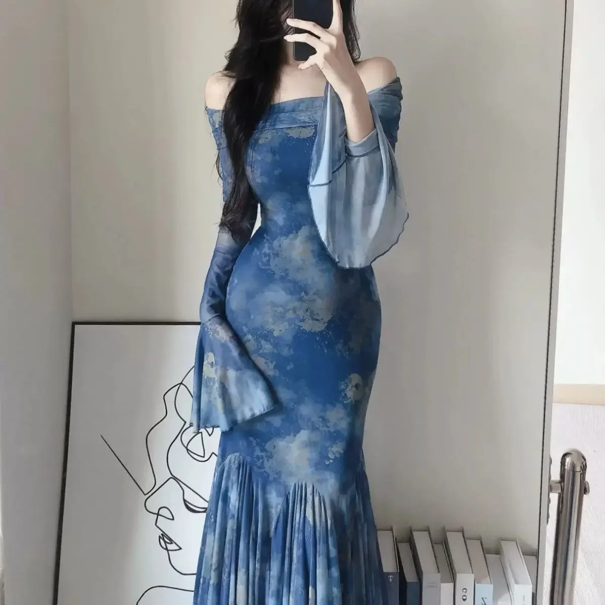 Large Size Fat Mm Charming Temperament Pure Sexy Hot Girl with One Shoulder Waist Slim Hips and Fish Tail Long Dresses
