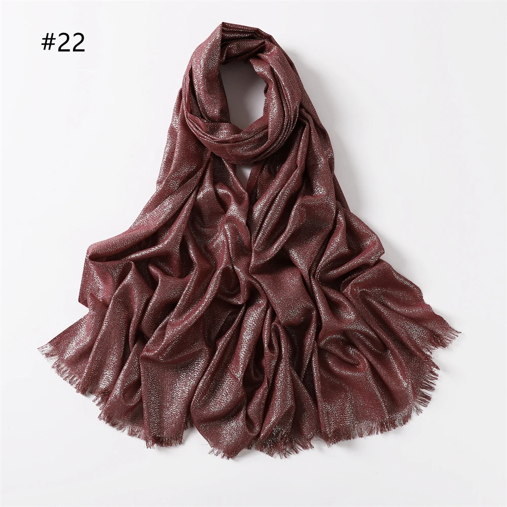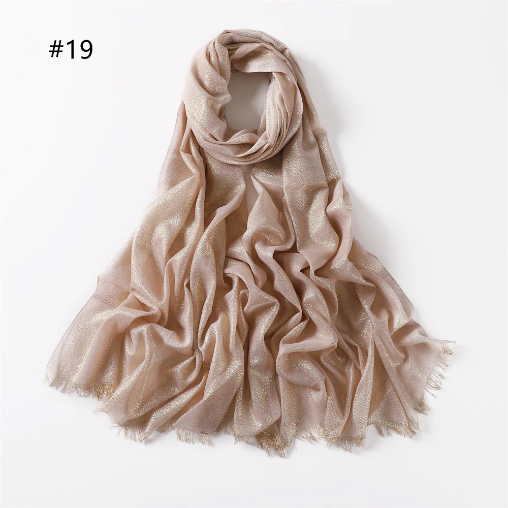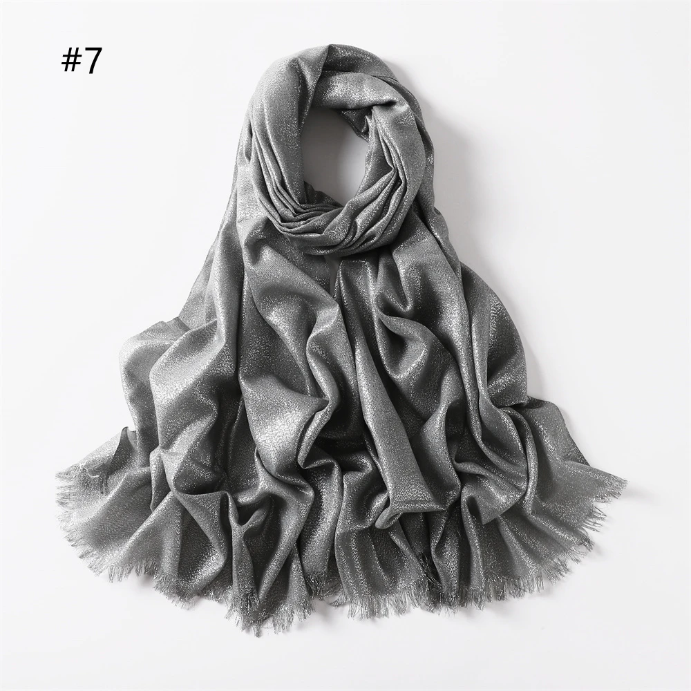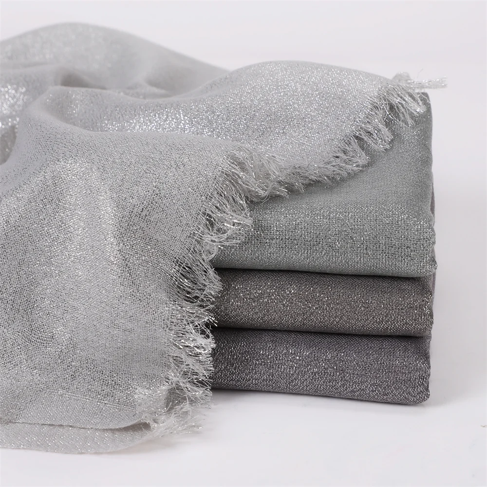Lastest Brand Design Scarf Shiny Solid Color Shawls Rayon Fabric Gold Silk Silver Wire Head Shawl Fringe Hijab For Women