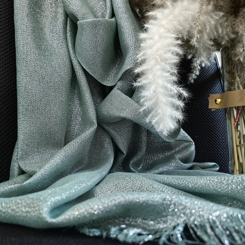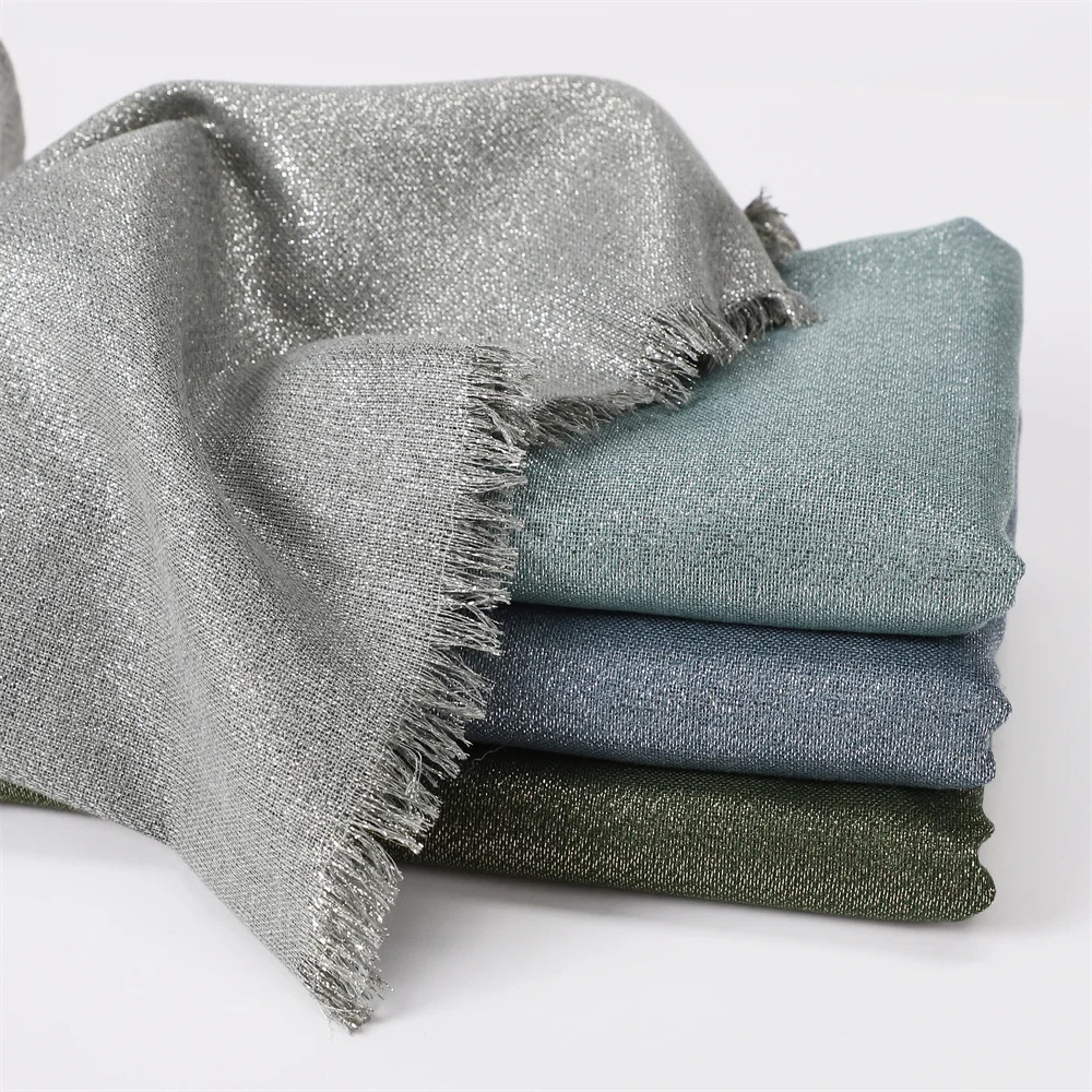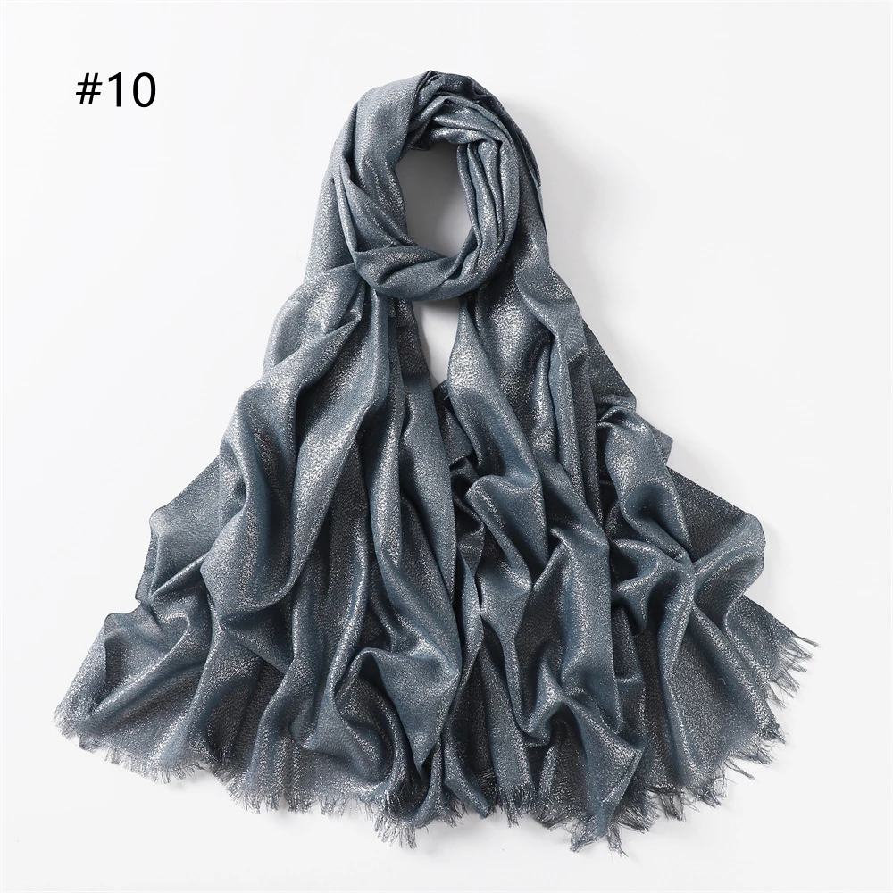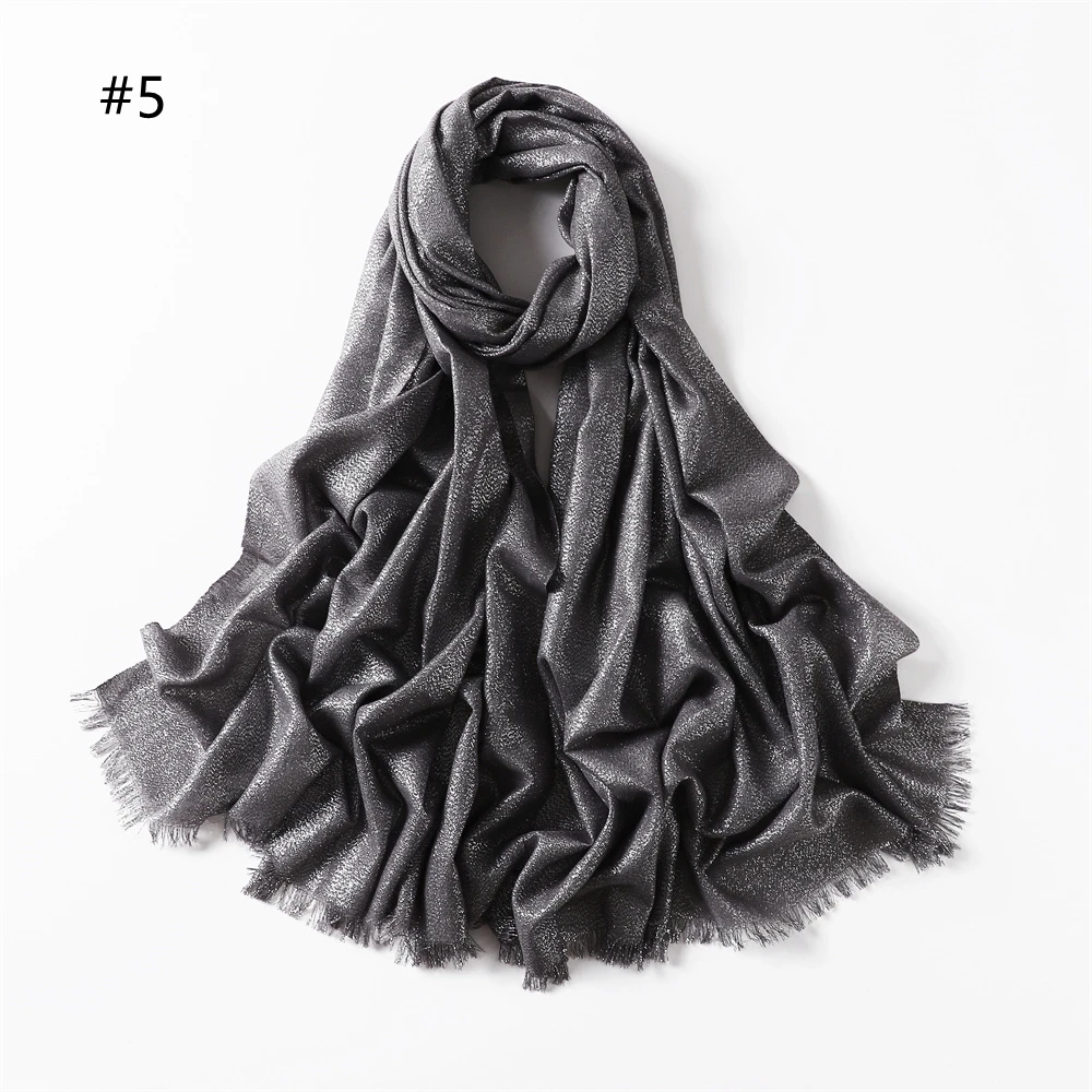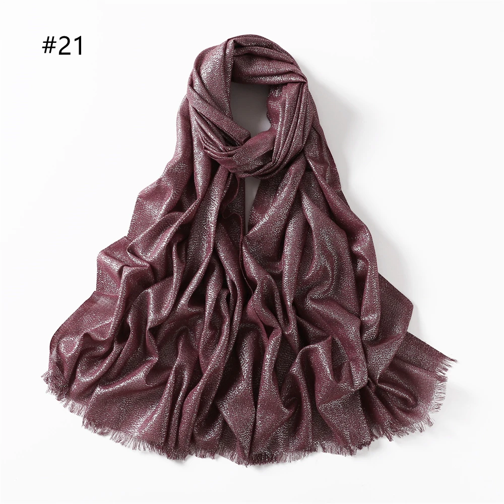 Lastest Brand Design Scarf Shiny Solid Color Shawls Rayon Fabric Gold Silk Silver Wire Head Shawl Fringe Hijab For Women