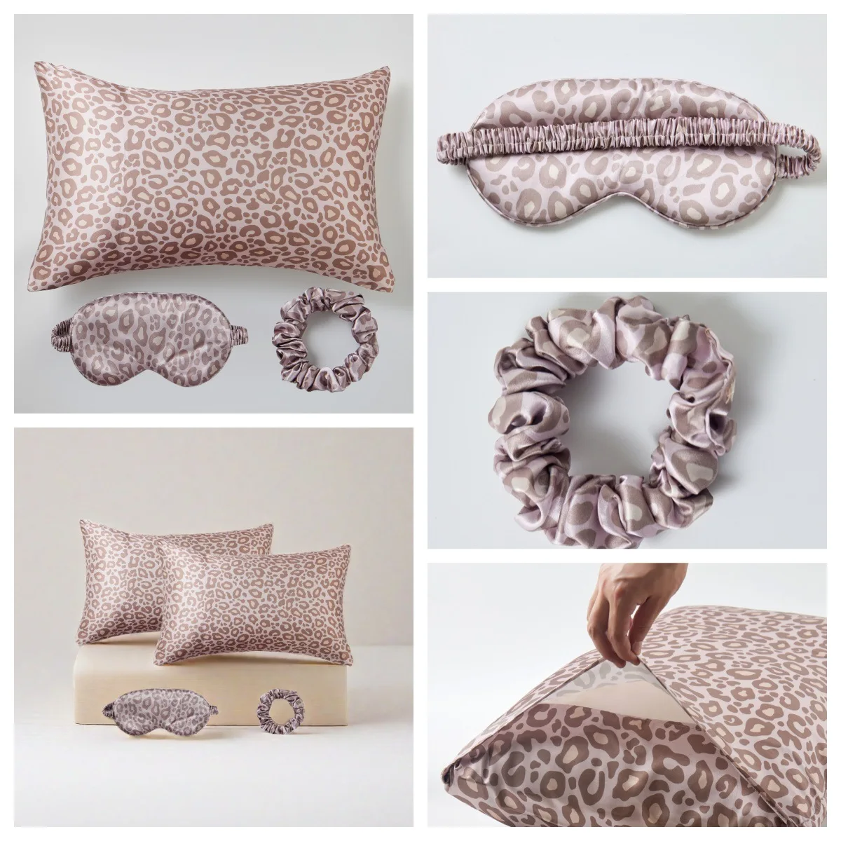 Upgrade your bedtime routine with this stylish 4-piece satin sleep set featuring an eye-catching leopard print. Designed to enhance comfort, beauty, and convenience whether you're at home or traveling.