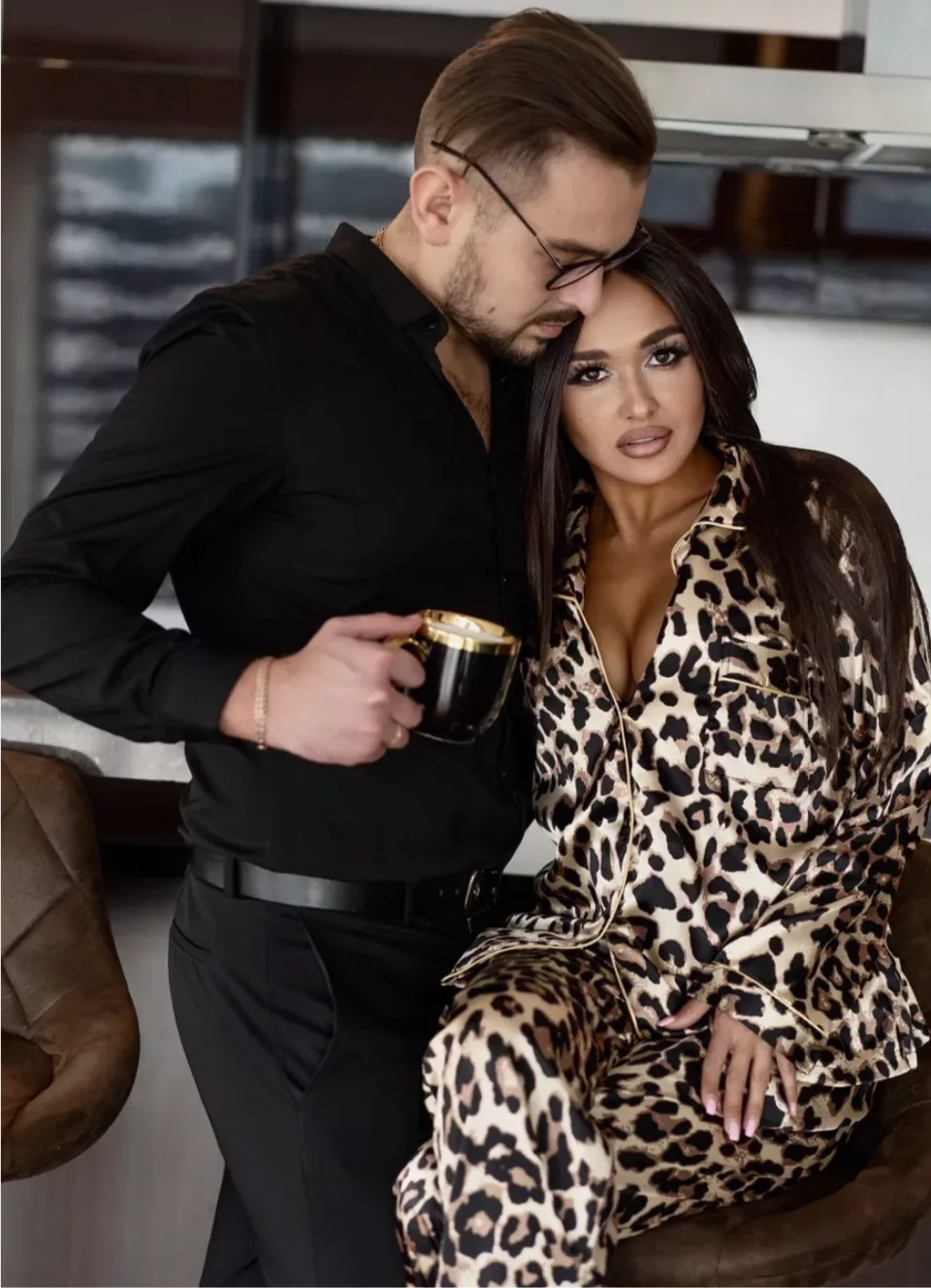 Leopard Print Long Sleeve Pajmaas Set Spring New Silk Satin Sleepwear Home Clothes Loose Casual Home Clothes Trouser Suits