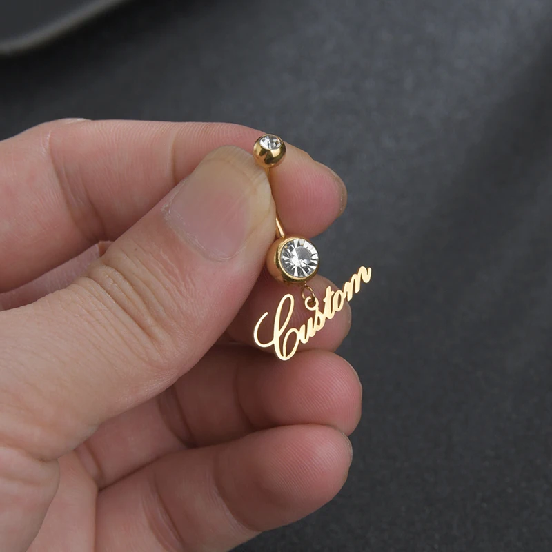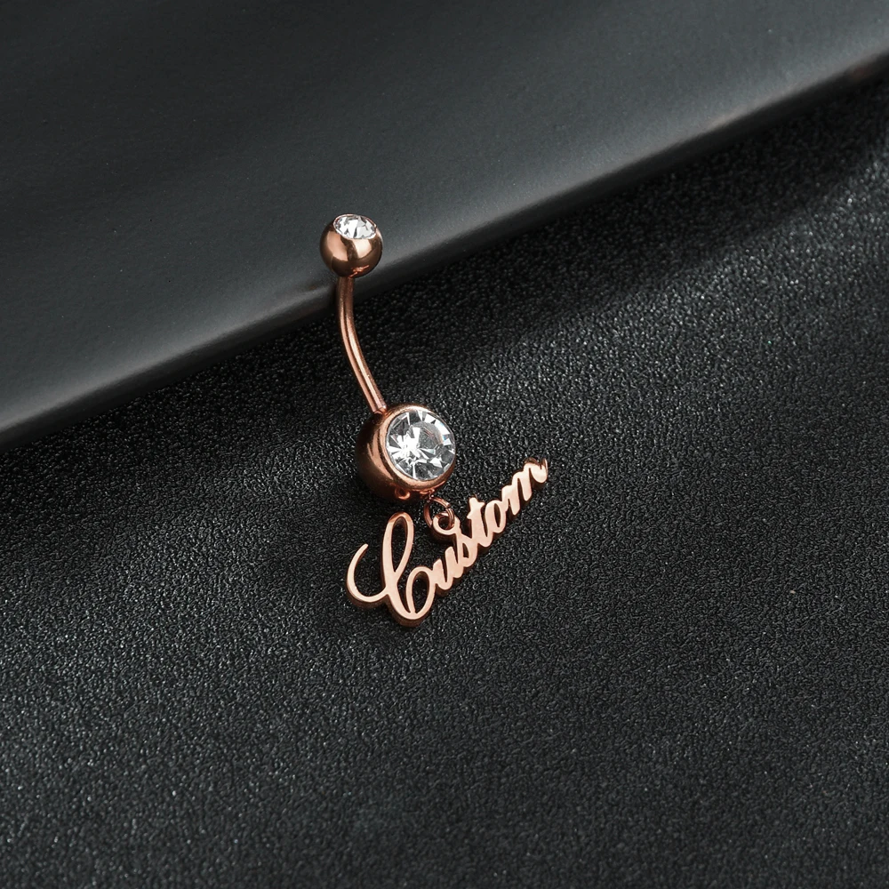 Letdiffery Custom White Stones Name Belly Button Rings Personalized Women Ring Stainless Steel Charming Body Piercing Jewelry