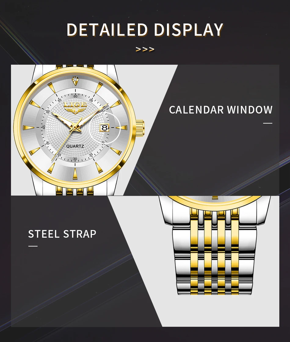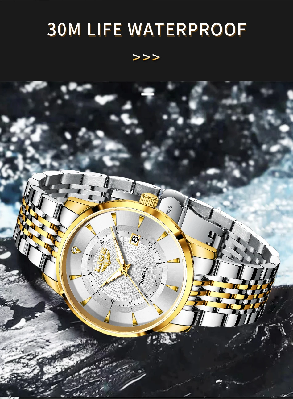 LIGE's new Fashion Women's Watch Luxury Stainless Steel Waterproof Clock Calendar Gift Quartz Watch for Women Relogio Feminino