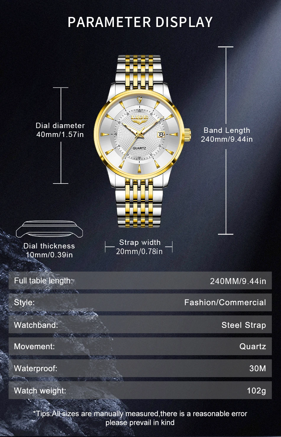 Feature: Stop Watch,Shock Resistant,Luminous,Complete Calendar,Water-Resistance