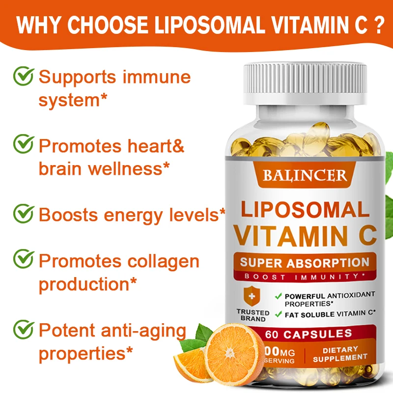Liposomal Vitamin C Capsules - Promotes Collagen Production, Supports Skin, Immune Health, Powerful Antioxidant