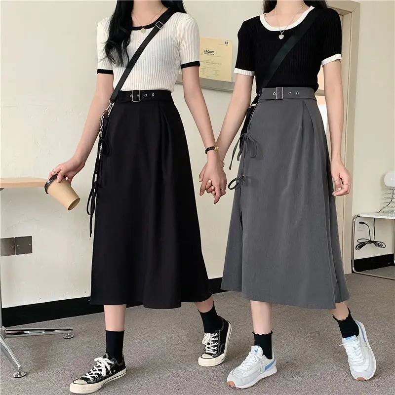 Long Skirt Women Solid Simple All Match High Waist Womens Korean Fashion Females Casual Comfortable Vintage Harajuku Soft