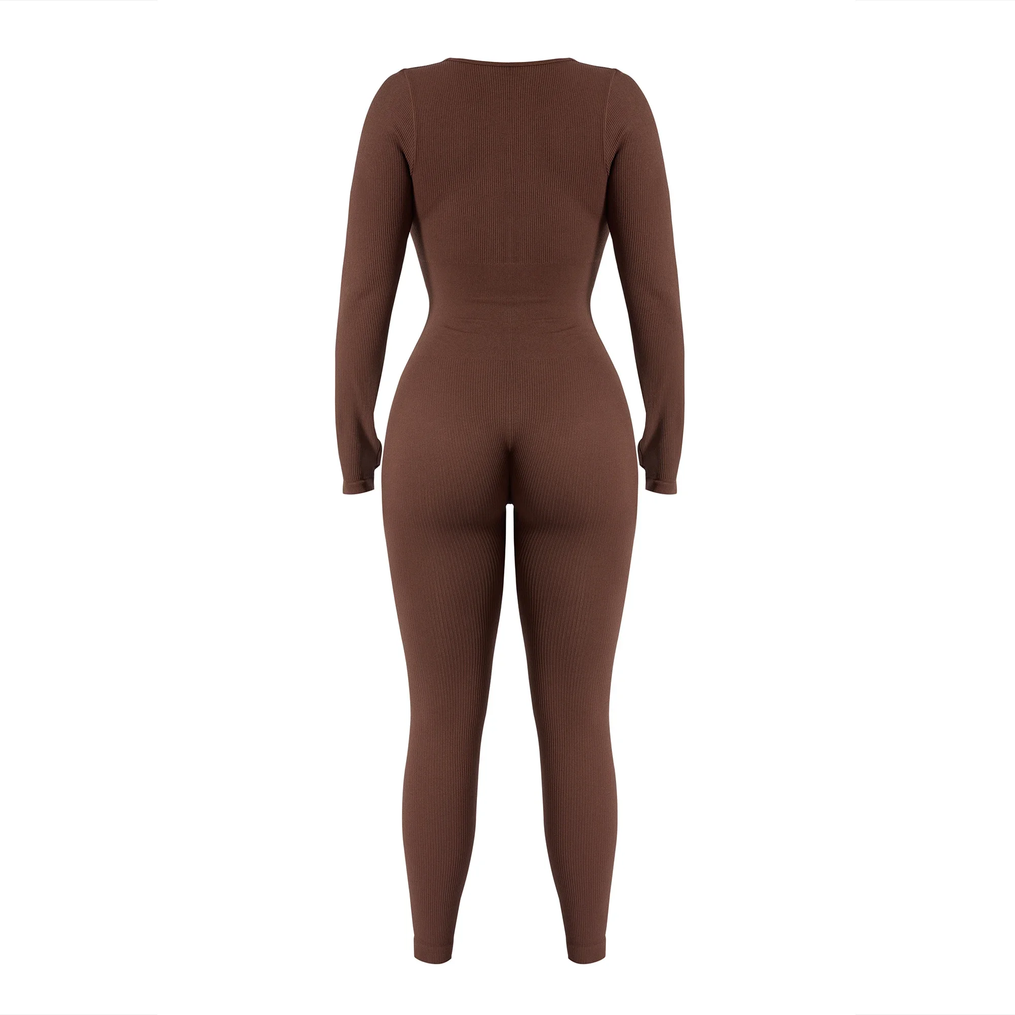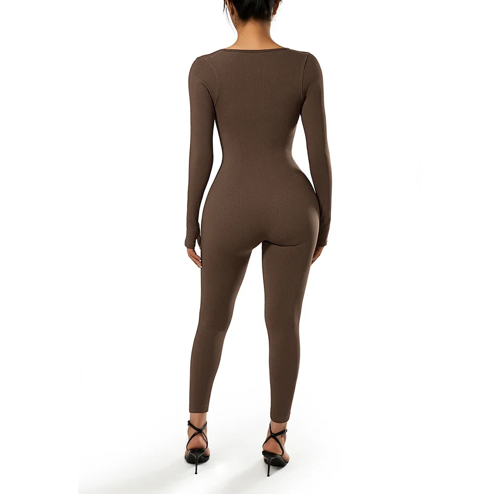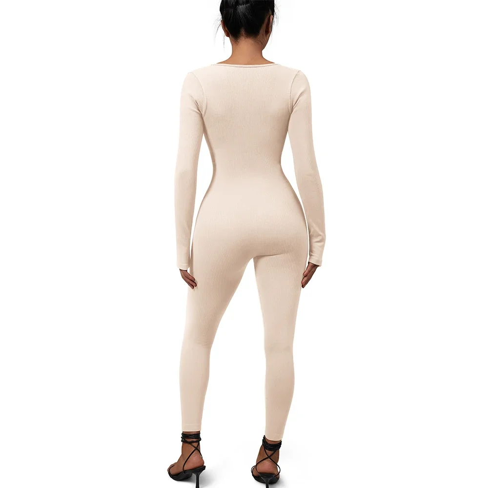 Long Sleeve Jumpsuit Women Bodycon One-piece Outfit Jumpsuit Square Neck Casual Streetwear Rompers Overalls playsuits Bodysuit