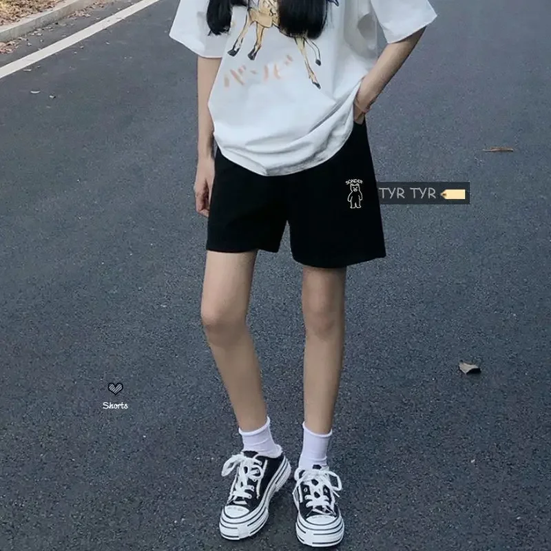 Loose Shorts Solid Pants For Women Streetwear Summer Clothes Cute Bear Printed Ropa De Mujer Elastic High Waist Casual Trousers