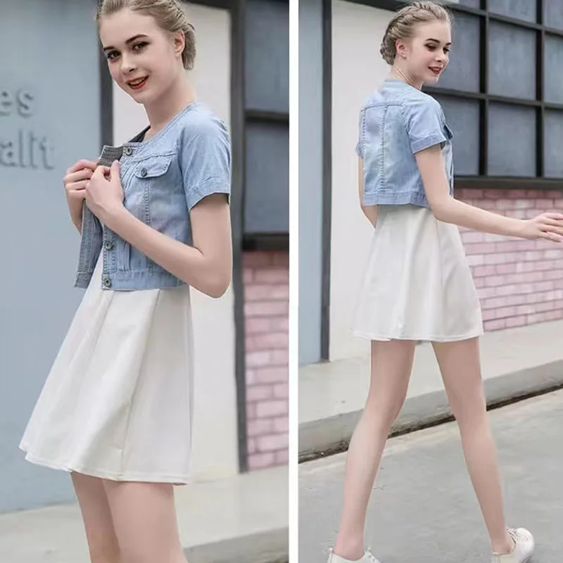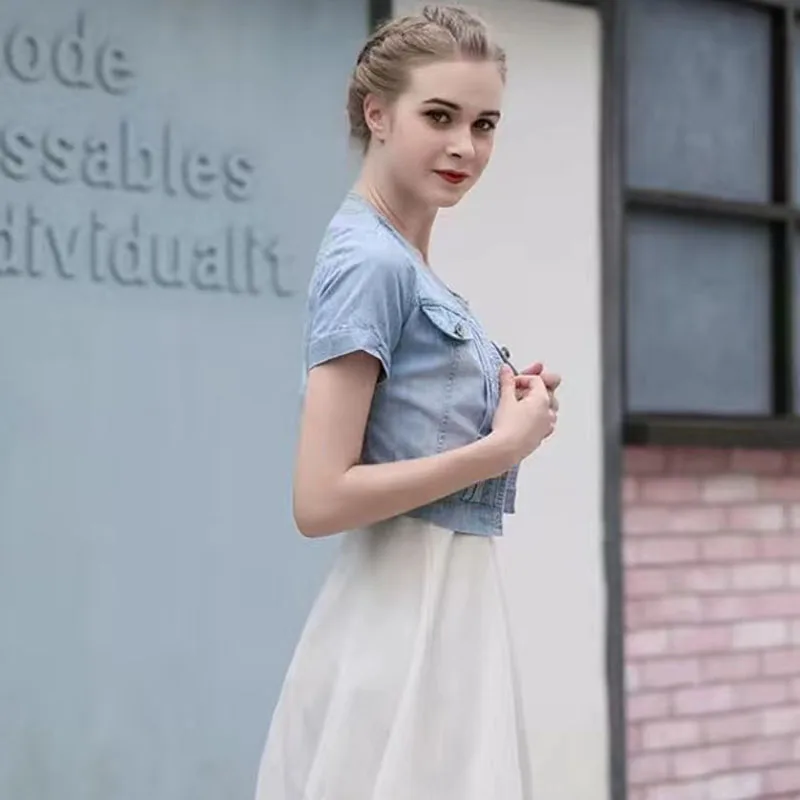 Lucyever Korena Y2K Cropped Jacket Women Casual Short Sleeve Denim Jackets Female Summer Thin Single-Breasted Jeans Outerwear