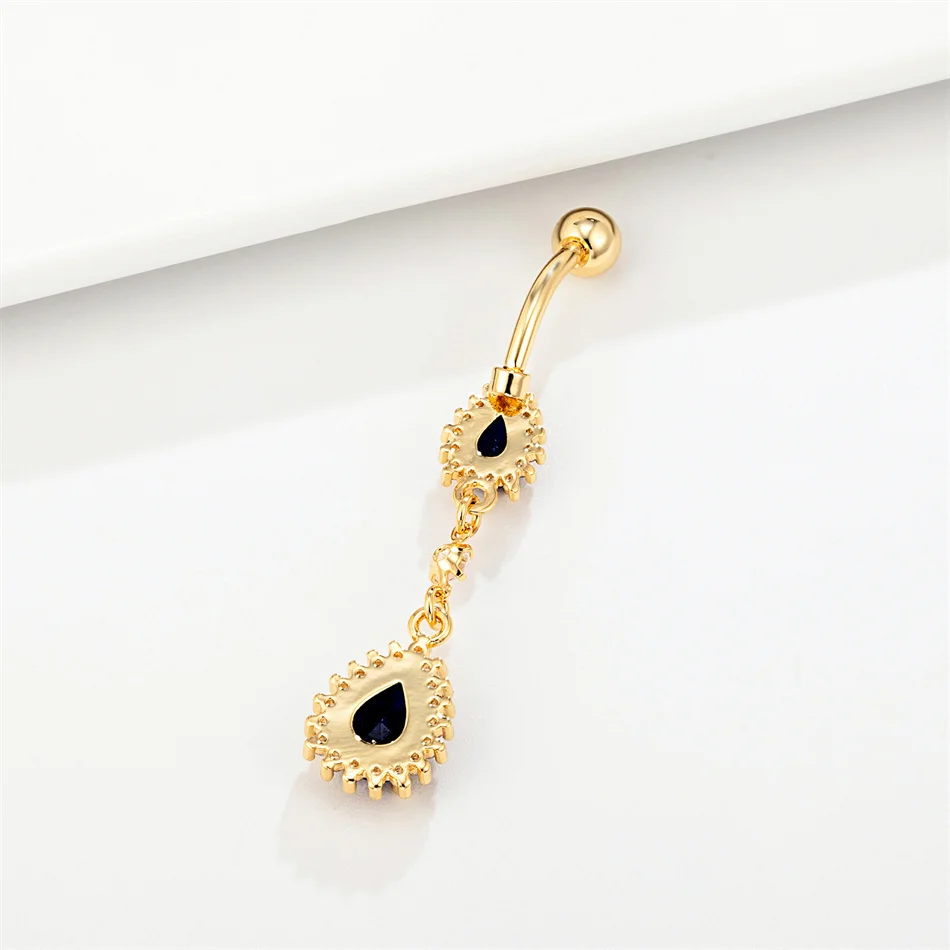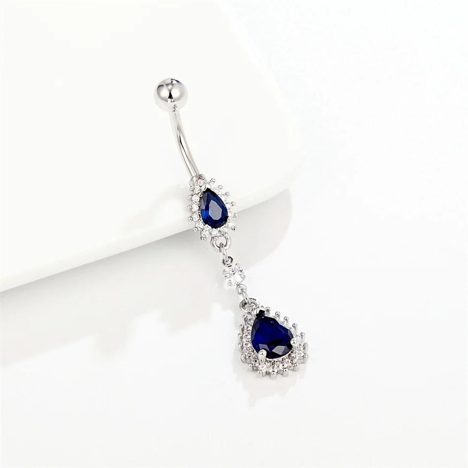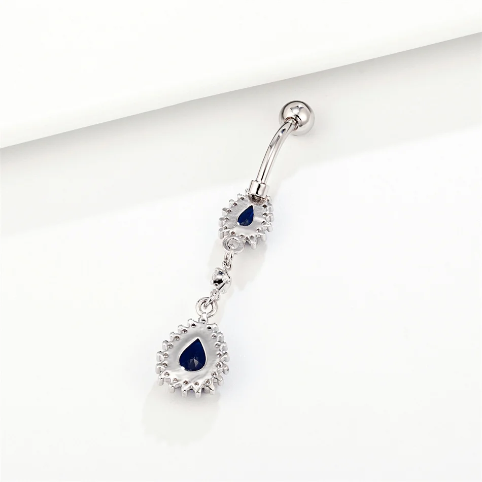 Luxury Blue Zircon Water Drop Belly Button Ring for Women Crystal Dangle Navel Piercing 14G Surgical Steel Barbell Body Jewelry