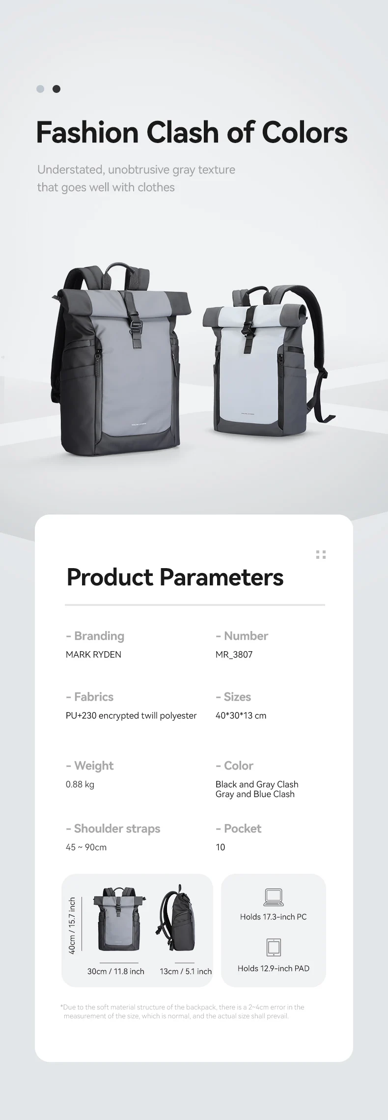 The MR3807 by Mark Ryden is a sleek, multi-compartment laptop bag. Made from durable Oxford fabric with a polyester lining, this lightweight bag comes in Black and Grey or Grey and Blue. It features a fashionable design, perfectly blending style with functionality.