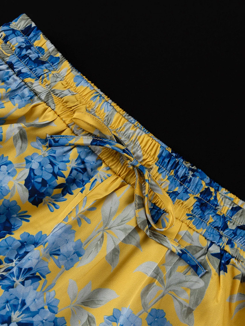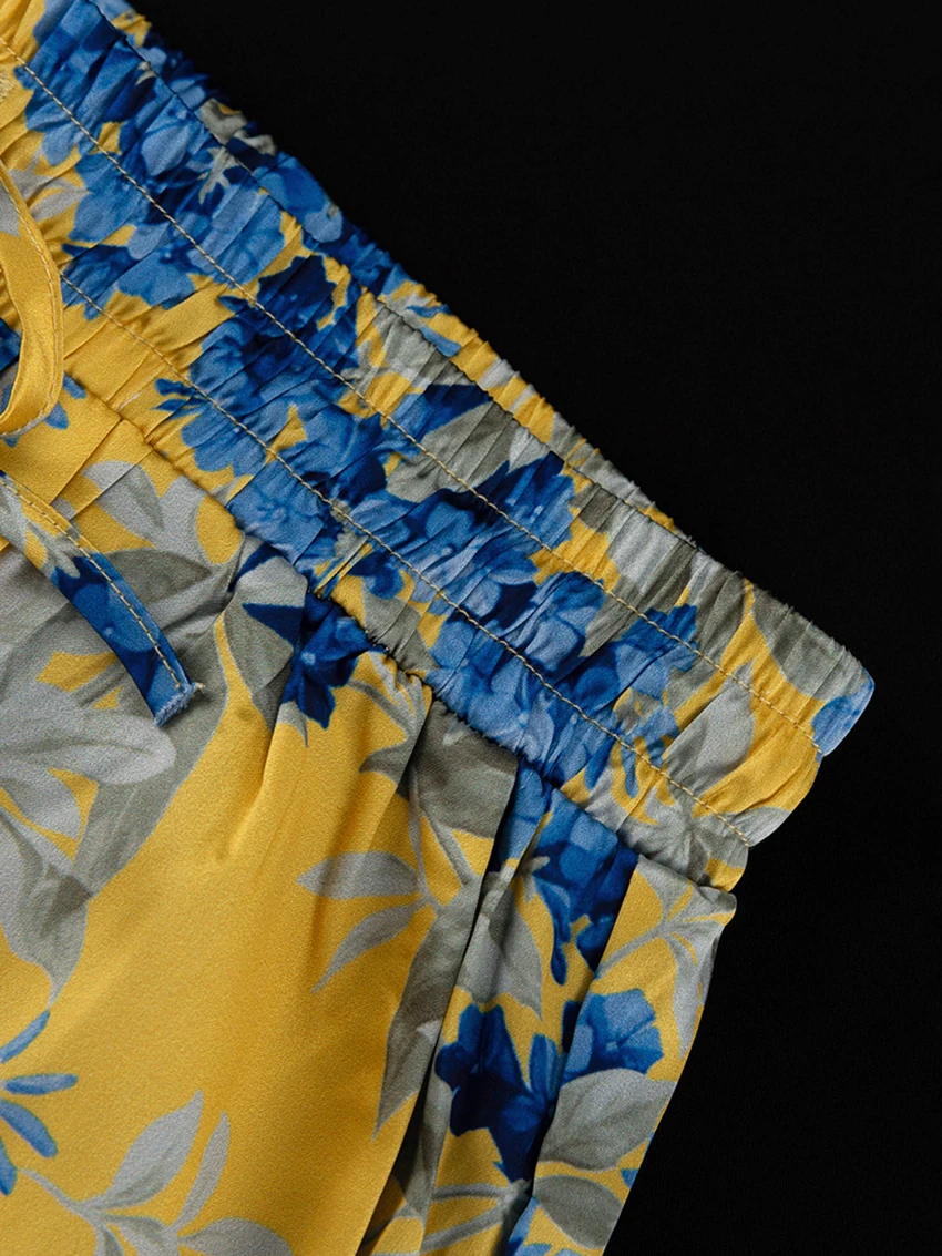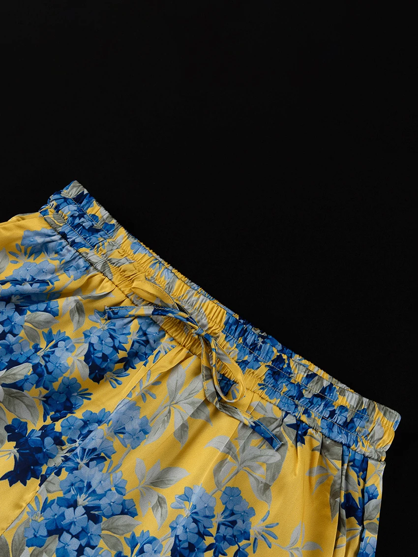 Women Print Pant Sets Two Piece Suit Round Neck Short Sleeve Tops Vests Wide Leg Trousers High Waist Pant Matching Sets Summer