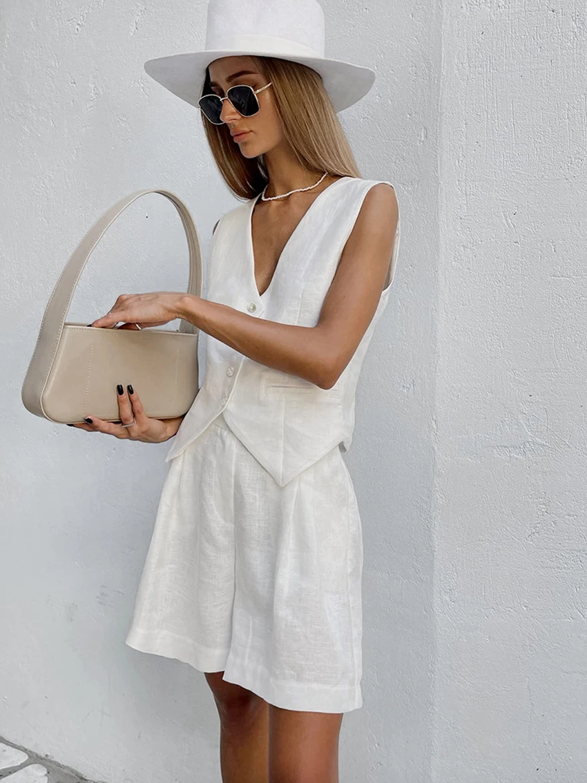 Marthaqiqi Loose Cotton Women'S Pajamas Sets Sexy V-Neck Sleepwear Tank Tops Nightwear Casual Shorts Femme Summer Pyjamas Suits