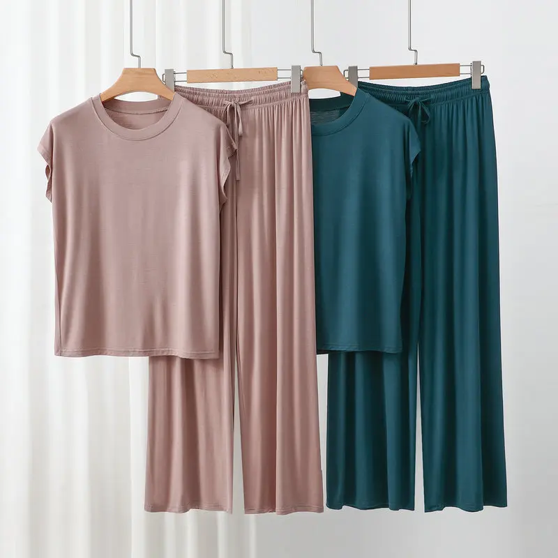 Modal Homewear set O-neck Tshirts short sleeves and Wide leg pants Loose sleepwear Casual streetwear suit all match