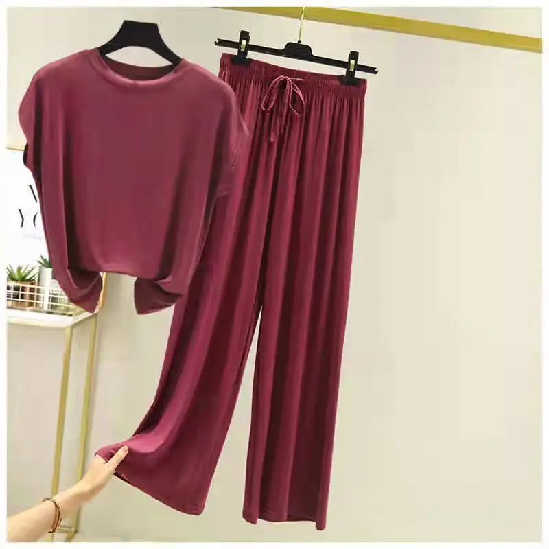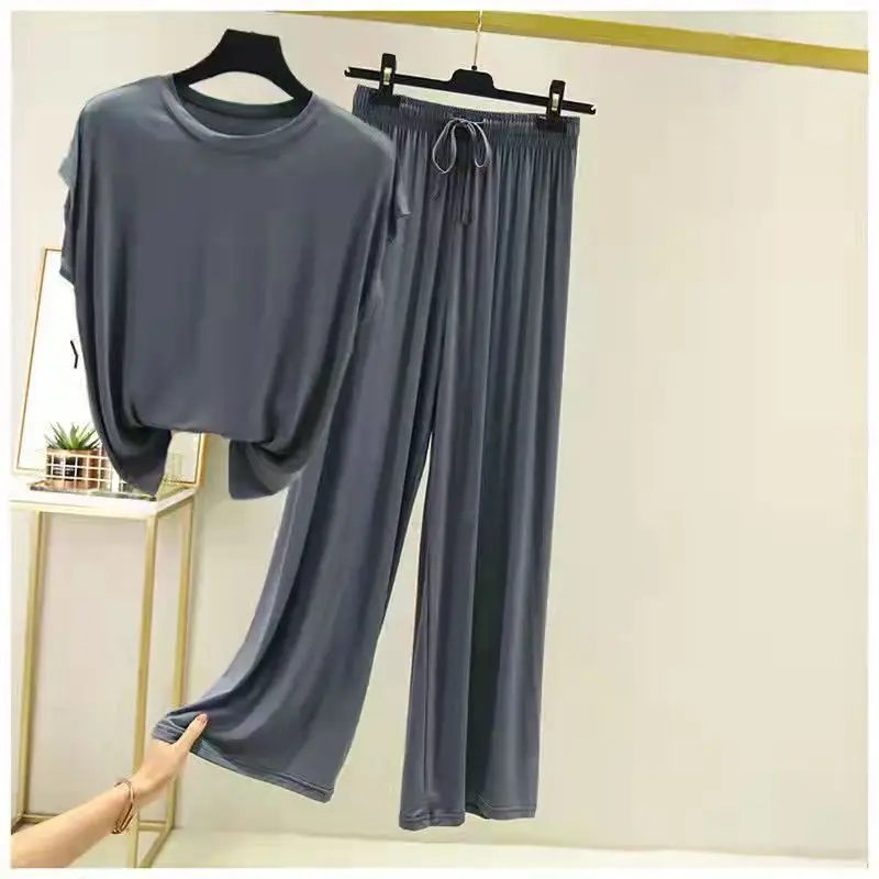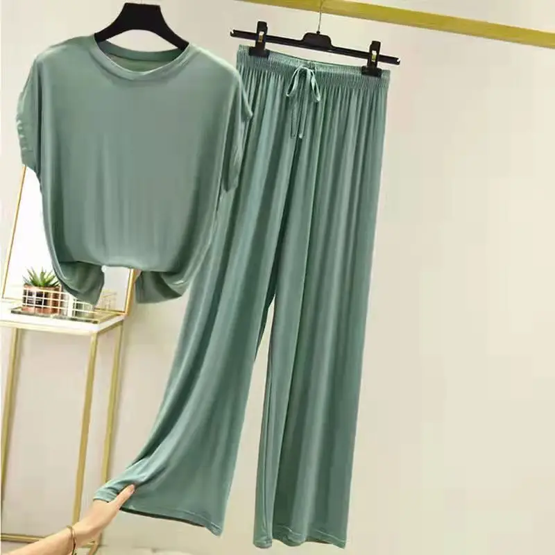 Modal Loose Homewear set O-neck Tshirts short sleeves and Wide leg pants Casual streetwear suit all match