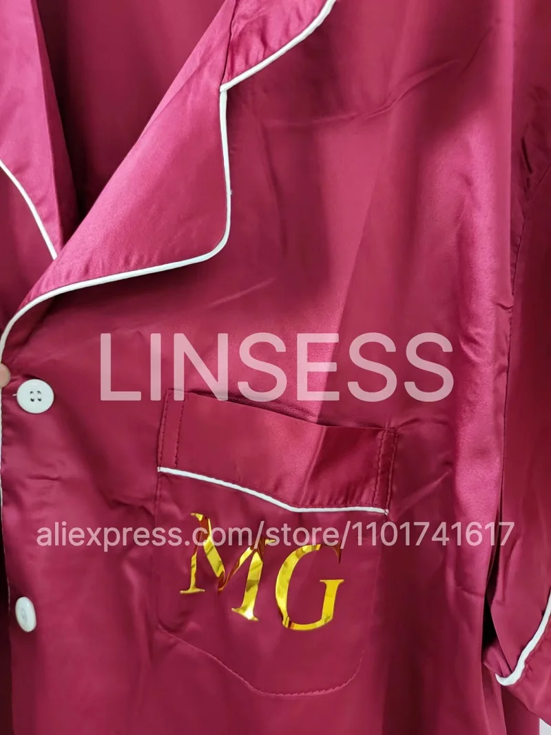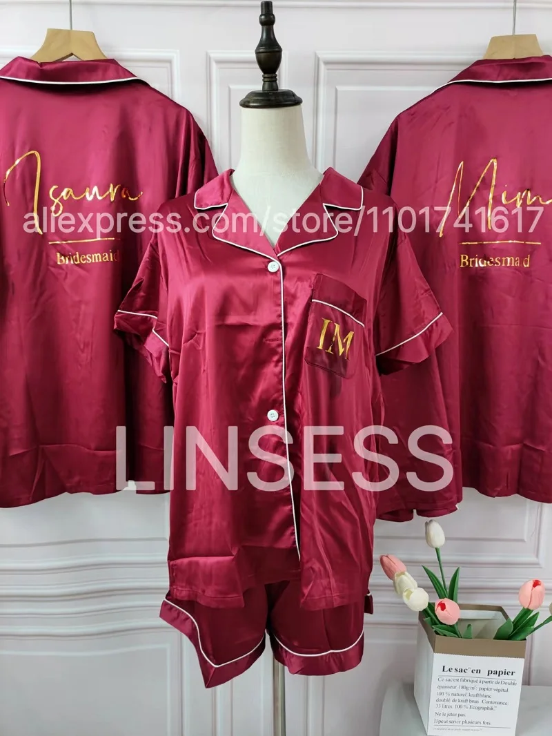 Monogram Bridesmaids Bridal Party Pyjamas Personalized Silky Satin Pajamas Bride and Bridal Squad Silk Satin Wedding Pyjama Set