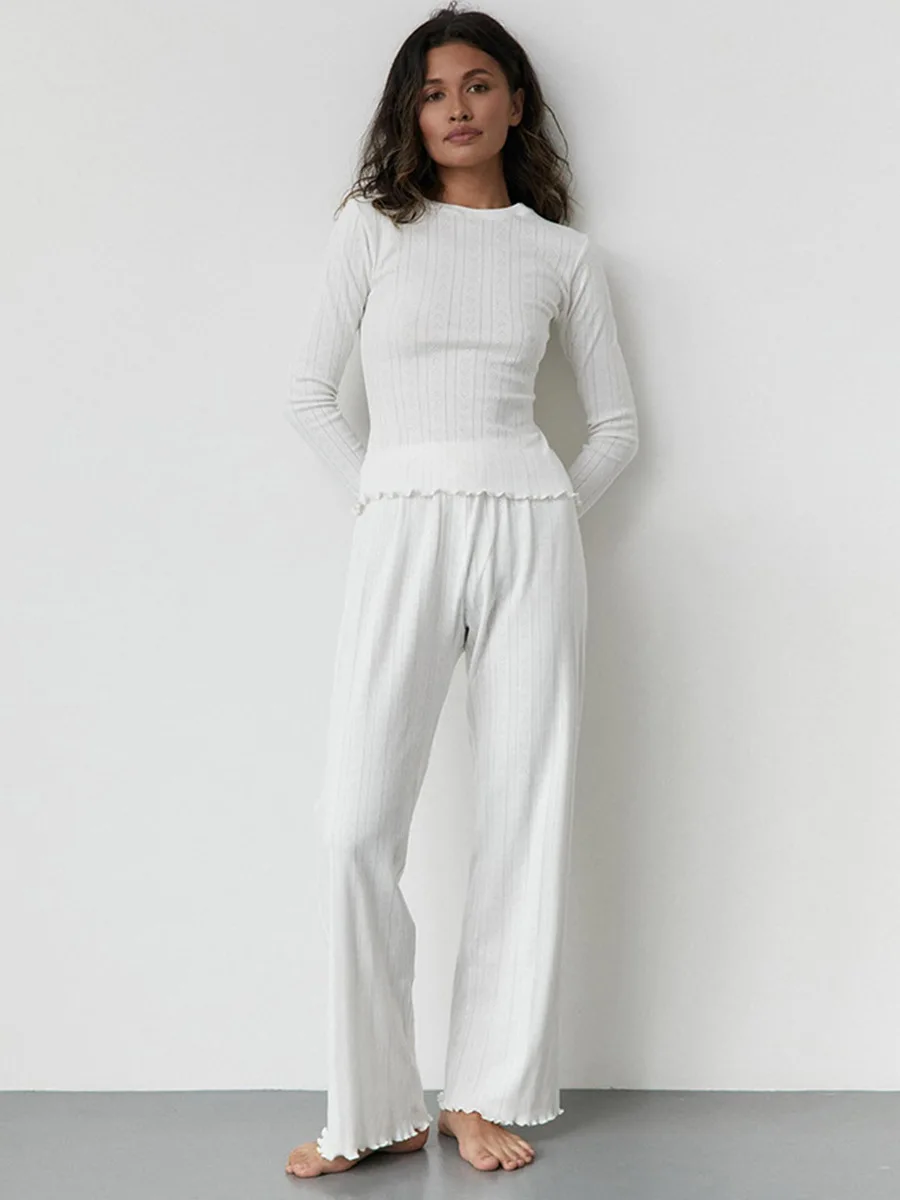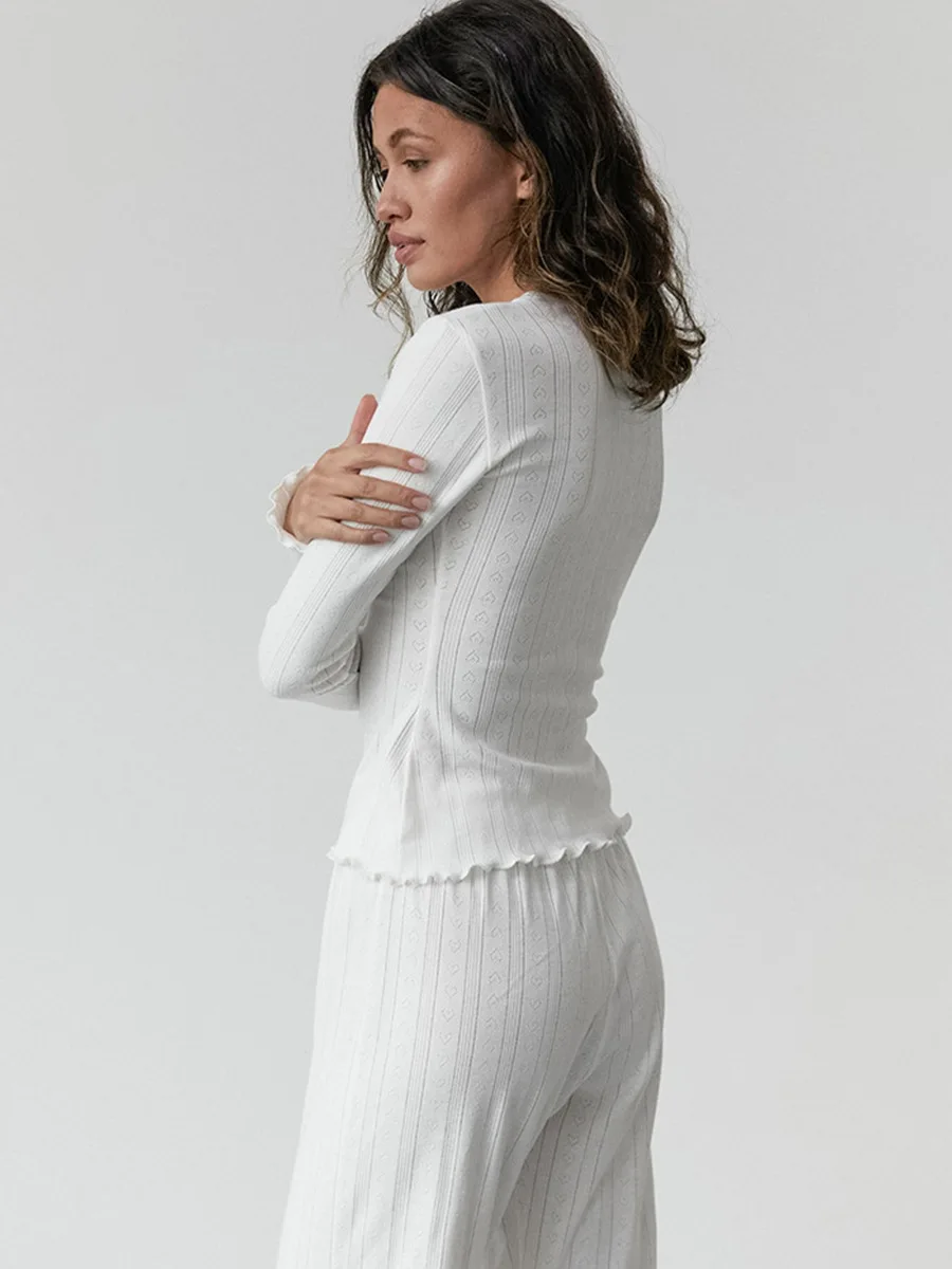 Mozuleva Love Jacquard Long Sleeved Pajamas Set Women's Spring Knitted Cardigan Pants Pajamas Comfortable Women Home Clothes