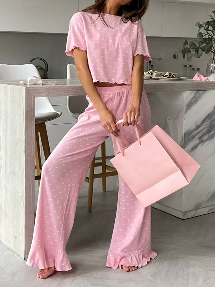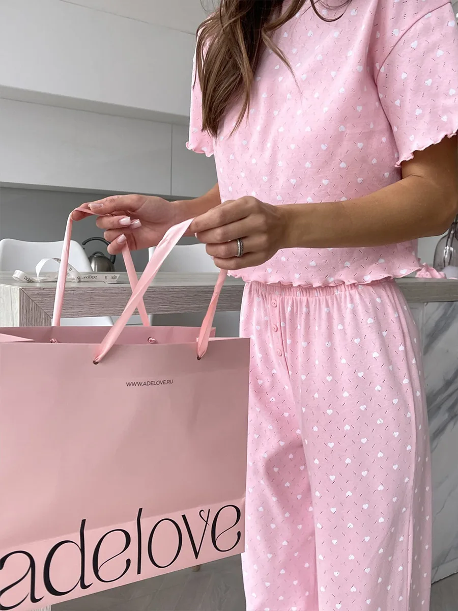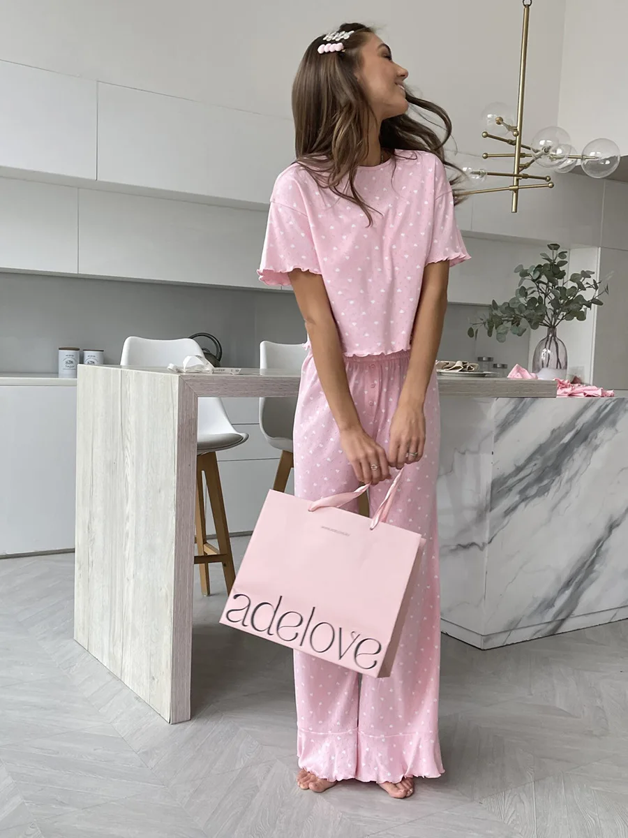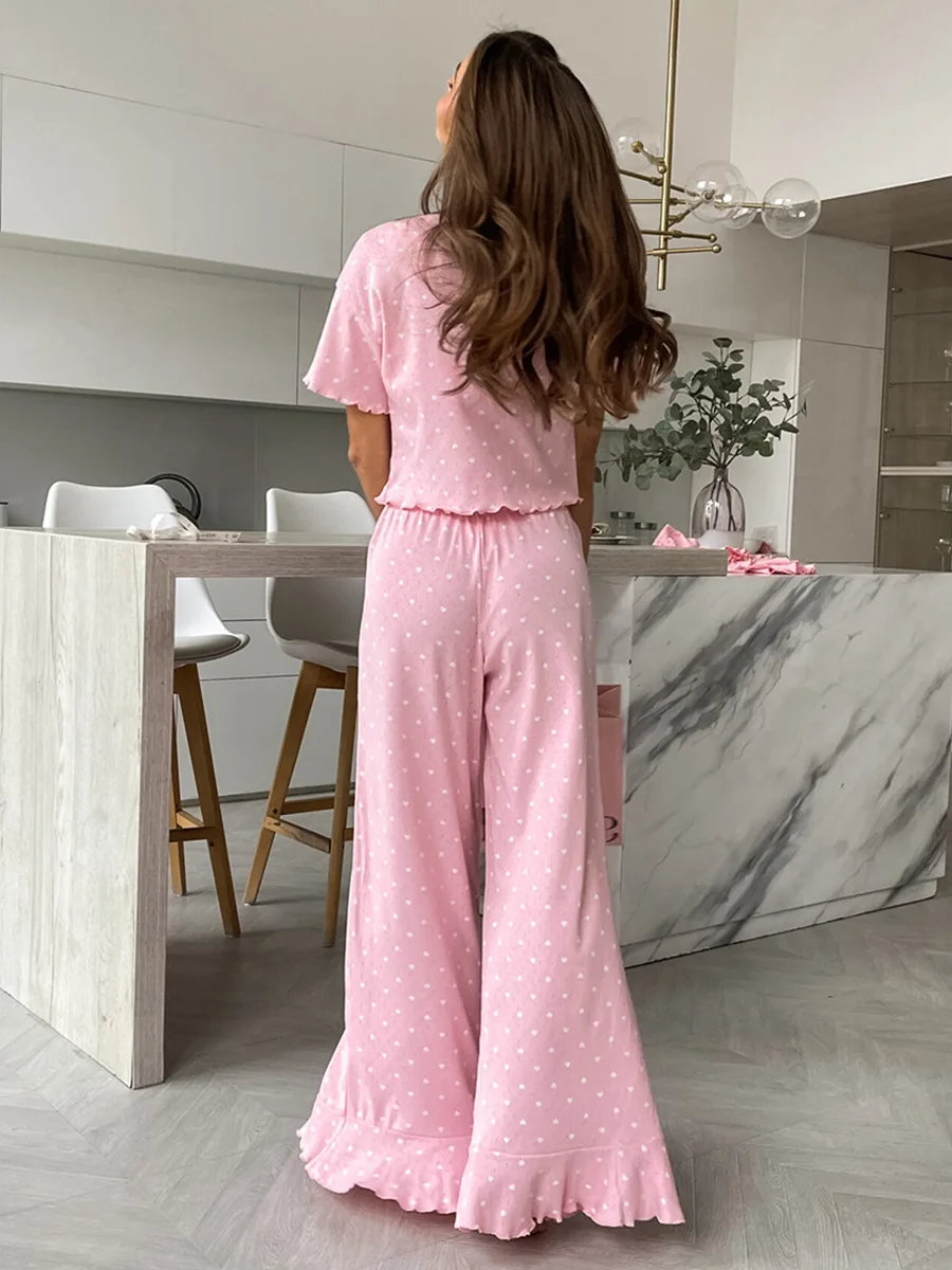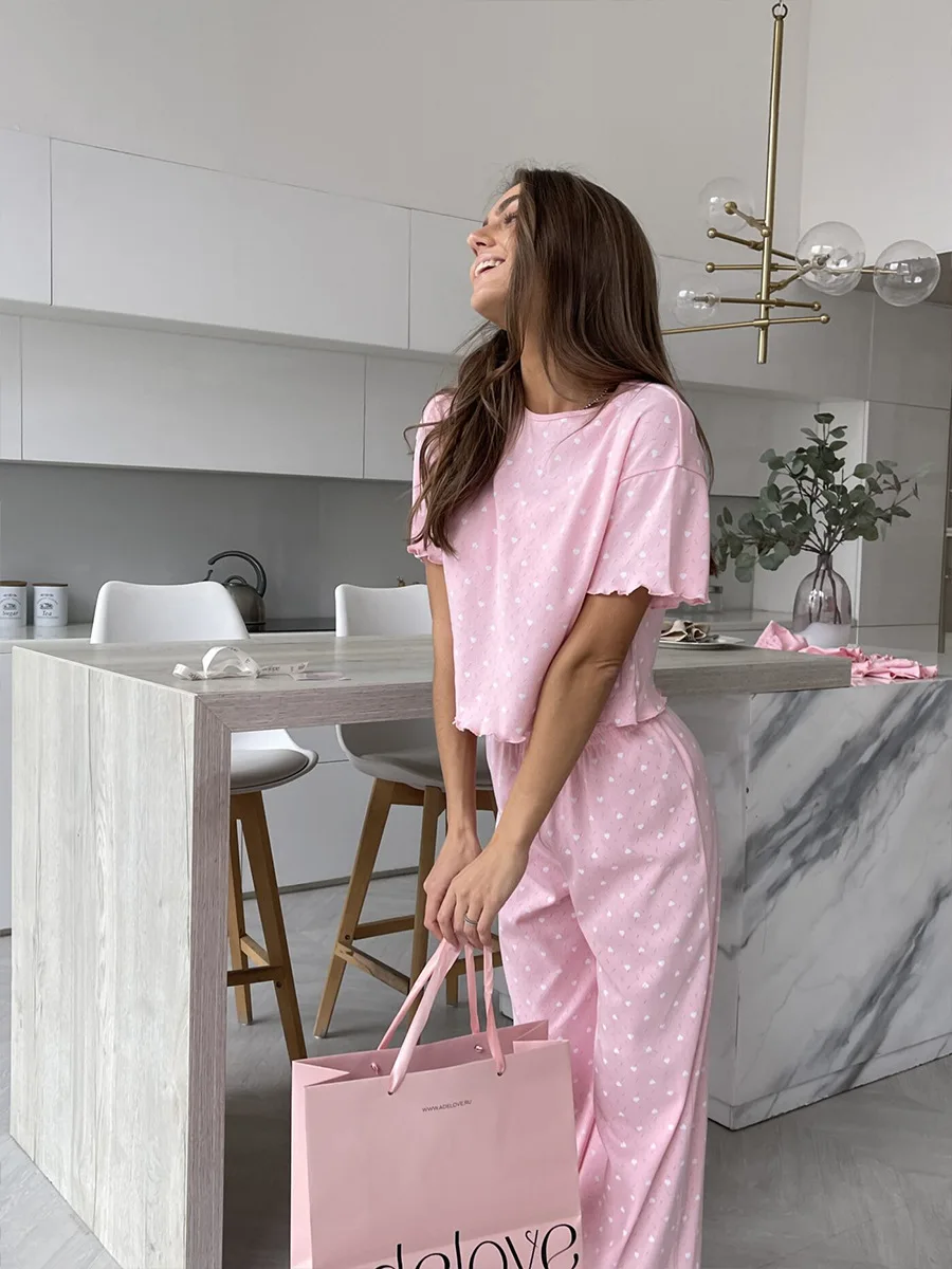 Muzuleva New Fashion Love-Printed Short-Sleeved Pants Pajama Set Women's Summer Pink Sleepwear Loose Casual 2-Piece Set