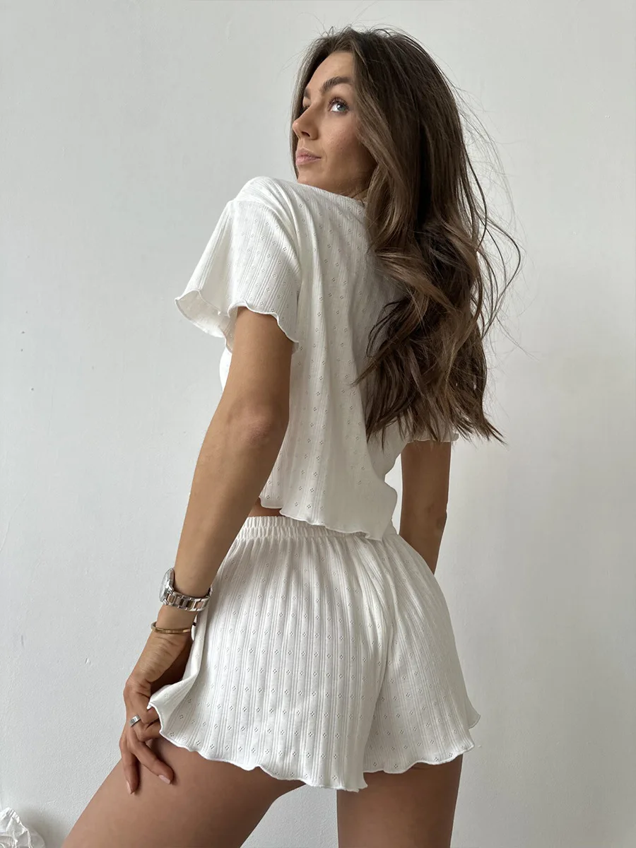 Muzuleva Summer New Women's Short Sleeved Shorts Pajama Set Elegant Jacquard Weave Breathable Homewear Daily Lounge & Sleep